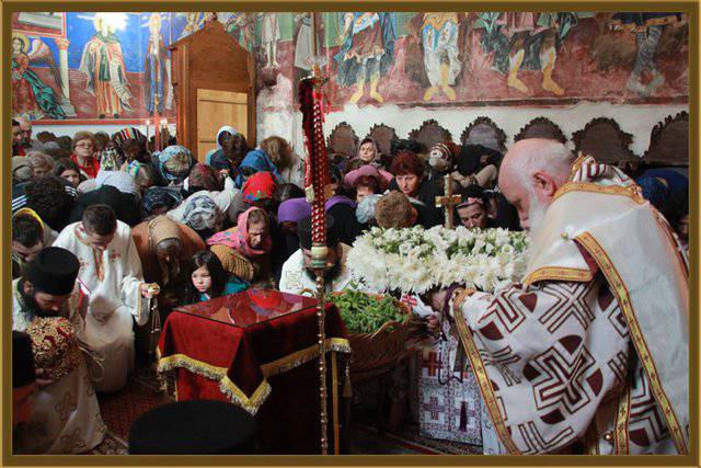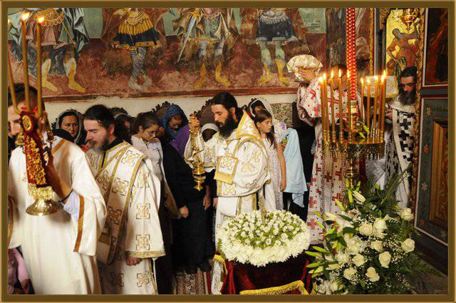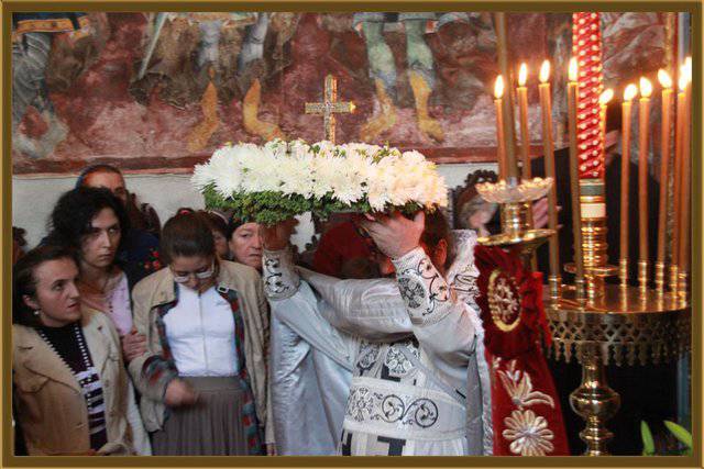 И во светата тајна миропомазание, новокрстениот крстообразно се помазува со свето миро по целото негово тело, со зборовите печат на дарот од Св. Дух. Тоа, пак, значи, крстениот да расте духовно во полнотата Христова, и Крстот Христов да го пази, да го штити, за да може да биде вистински член на Едната, Света, Соборна и Апостолска Црква. И ние денеска, прославувајќи го Воздвижението на Чесниот и Животворен Крст Христов, да се очистиме од сите лоши мисли и ниски страсти, па достоинствено да се поклониме на Крстот Господов. А Божјата благодат, односно Неговата сила, нека нè следи во нашиот живот, како вистински членови на нашата света православна Црква. Амин.