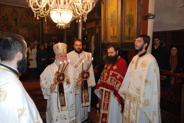 Од името на нашиот Митрополит Тимотеј и од името на целото свештенство ви го честитаме Раѓањето Христово со торжествениот поздрав Христос се роди!