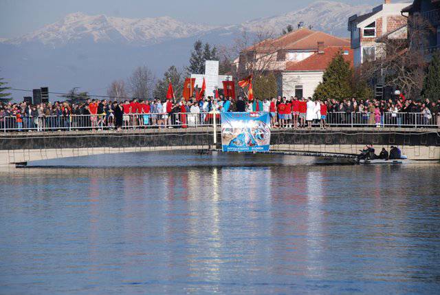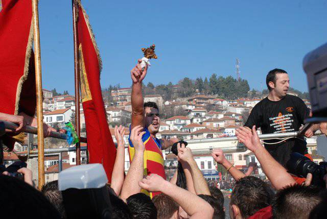 По завршувањето во Охрид, Митрополитот Тимотеј ги освети и водите на реката Црни Дрим во Струга и го фрли чесниот Крст, кој годинава заврши во рацете на Мирко Димоски од Струга.