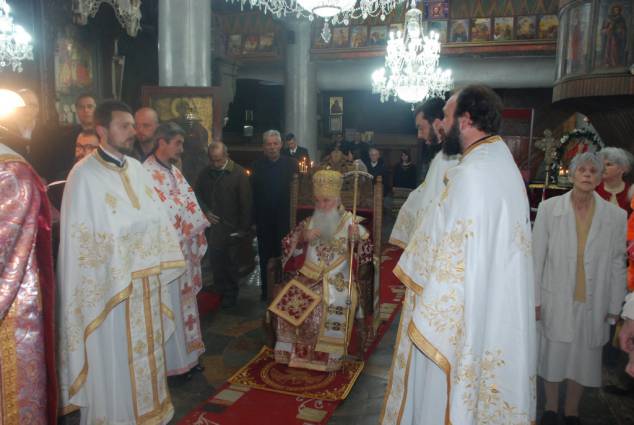На Вториот ден од прославувањето на празникот над празниците и торжеството над торжествата - Воскресението Христово, на 13.04.2015 година, во храмот „Св. вмч. Ѓорѓи“ во Струга, беше отслужена света архиерејска Литургија, на која чиноначалствуваше Неговото Високопреосвештенство Митрополитот Дебарско-кичевски г. Тимотеј, во сослужение на протоереј-ставрофор Илија Танаскоски, свештениците Ристе Наумоски, Никола Христоски, Васко Голабоски и Роберт Илијевски и протоѓаконот Николче Ѓурѓиноски. По завршувањето на Литургијата, Митрополитот Тимотеј им го честита најрадосниот ден на струшките верници, и ги поучи со пригодно слово, во кое се задржа на значењето на Празникот за човечкиот род, но и за учеството на христијаните во Воскресението Христово, преку нашата доброволна жртва и правењето добродетели.