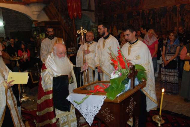 Прославата започна со свечена Вечерна богослужба, на која чиноначалствуваше Неговото Високопреосвештенство Митрополитот Дебарско-кичевски г. Тимотеј, во сослужение на архимандритот Нектариј, протоереите Стевчо Тошевски, Димче Ѓорѓиески и Никола Христоски, свештениците Благоја Спироски, Љупчо Бакрачески и Александар Крстаноски, протоѓаконот Николче Ѓурѓиноски и ѓаконот Сашо Целески. По завршувањето на Вечерната богослужба, беше отслужен и Акатистот на Пресвета Богородица, а Митрополитот Тимотеј се обрати кон верните со пригодна беседа, која интегрално ви ја пренесуваме.