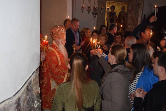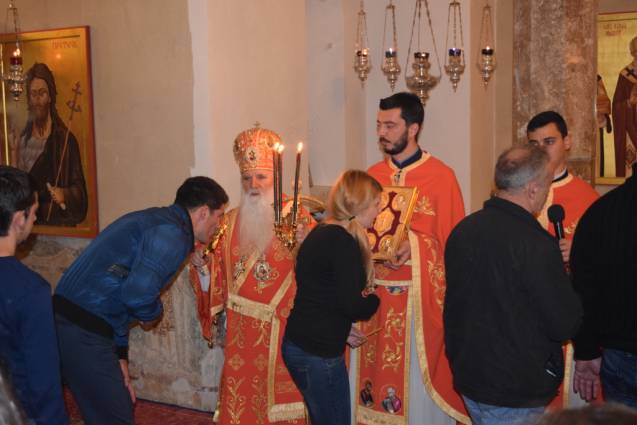 А вам, возљубени чеда на Македонската православна црква, во Македонија и насекаде по светот, молитвено ви посакуваме бодар дух, силна вера, непоколеблива надеж и возвишена и постојана љубов. Вашите срца нека се исполнат со искрено покајание, та да се укрепите во доблеста и праведноста и да ја почувствувате постојаната радост во нашиот Господ, Победителот на смртта. Искушенијата со кои се соочуваме во овој живот, нека ни бидат предворие за воскресение во вечен живот – па, уподобувајќи се на Христа, да се удостоиме за учество во Неговите вечни блага и, исполнети со благодатта на Светиот Дух – торжествено да воскликнеме: