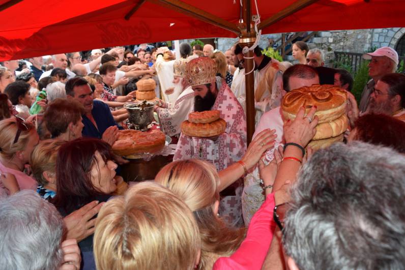Во Христово време мноштво народ од цела Јудеа и од Ерусалим, од приморјето Тирско и Сидонско доаѓаа при Христа на гората и ја слушнаа проповедта на блаженствата. Така и денес во сите храмови на Македонската Православна Црква, верниот народ ја добива благодатта на Пресветата Троица и се радува и весели бидејќи знае дека го има Свети Наум за свој застапник пред Бога.