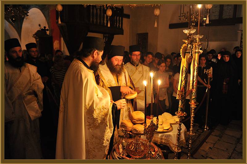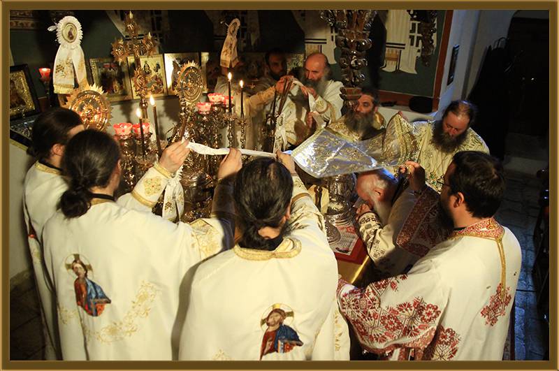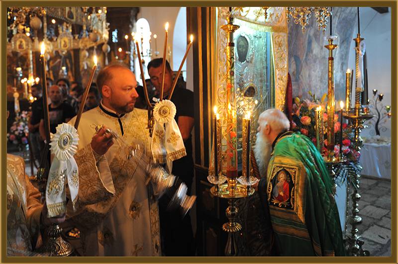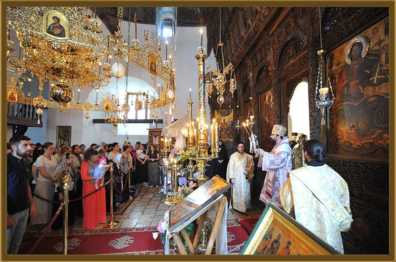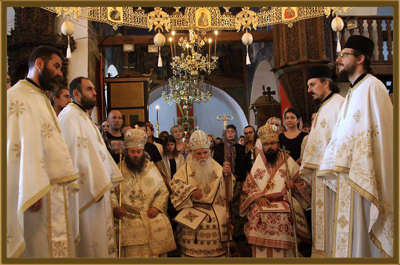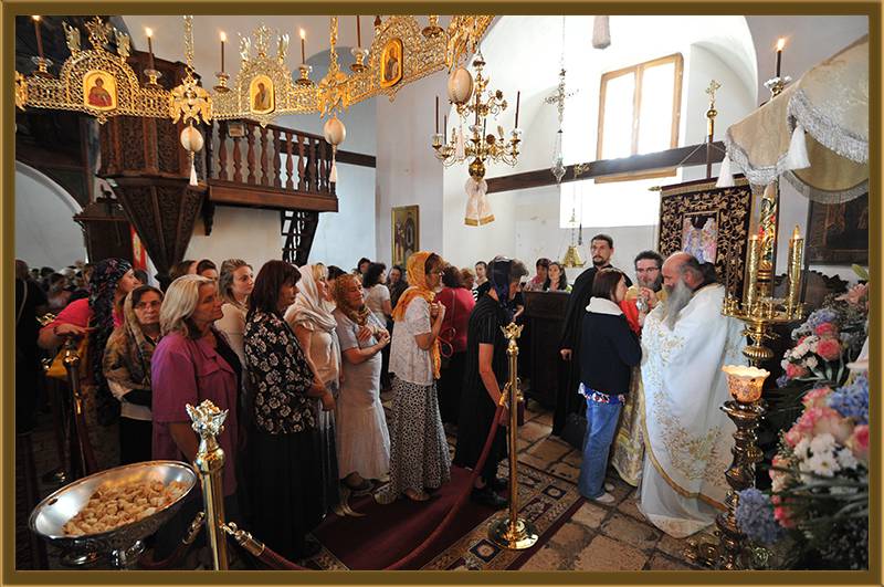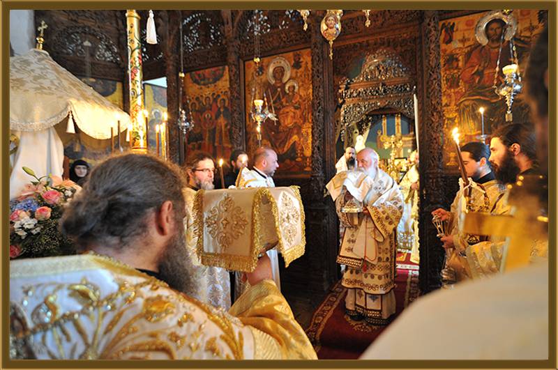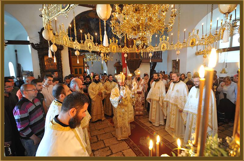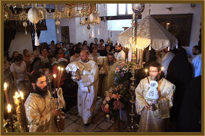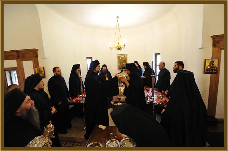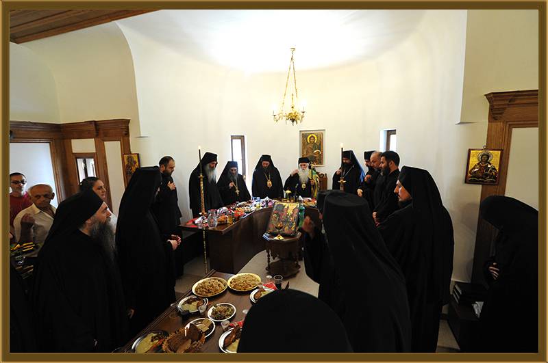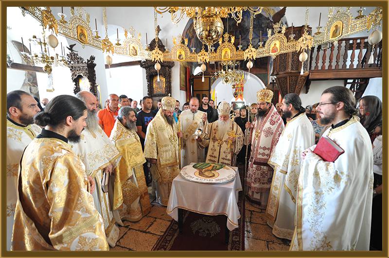 На игуменот на оваа Света Обител, Архимандритот г. Партениј, на братството и на сестринството од метохот, им го честитам денешното торжество на роденденот на патронот на овој манастир. Светата Литургија нека е на здравје и спасение. Амин!"