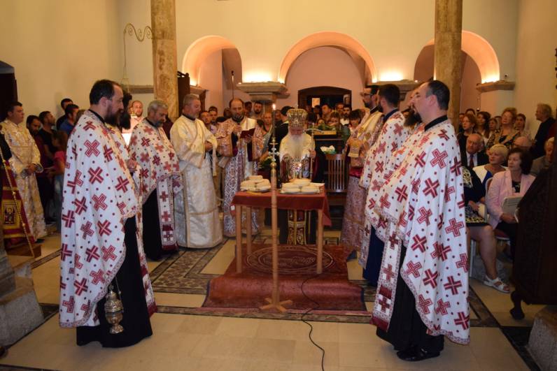 Торжествувањето на новиот апостол Павле во Македонија, продолжи утредента, на 09.08.2016 година, со света архиерејска Литургија, на која чиноначалствуваше Архиепископот Охридски и Македонски г.г. Стефан, во сослужение на Митрополитот Дебарско-кичевски г. Тимотеј, Митрополитот Европски г. Пимен, архимандритите Нектариј и Партениј, протоереј-ставрофор Сашо Богданоски, игуменот Агатон, протоереите Никола Христоски и Игор Никовски, свештениците Димче Азески и Ѓорѓи Блажевски, протоѓаконите Антонио Дујовски и Николче Ѓурѓиноски и ѓаконот Сашо Целески. По завршувањето на Литургијата, беше извршен чинот на Мал водосвет и беше прекршен празничниот колач, а Митрополитот Тимотеј се обрати кон неизбројниот народ, со пригодна беседа, која ви ја пренесуваме во целост.