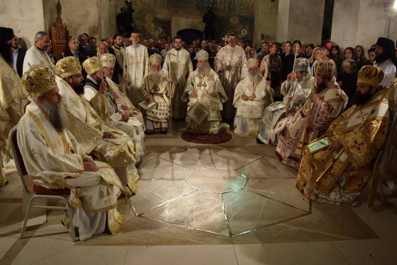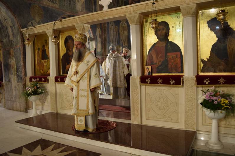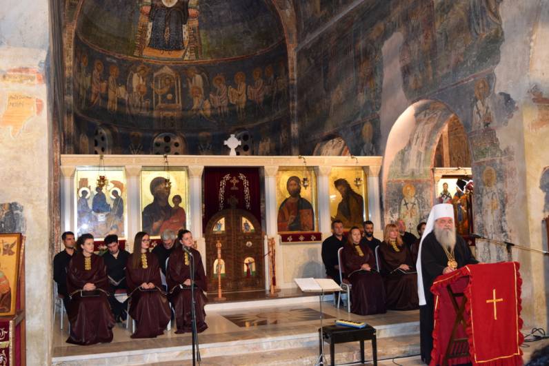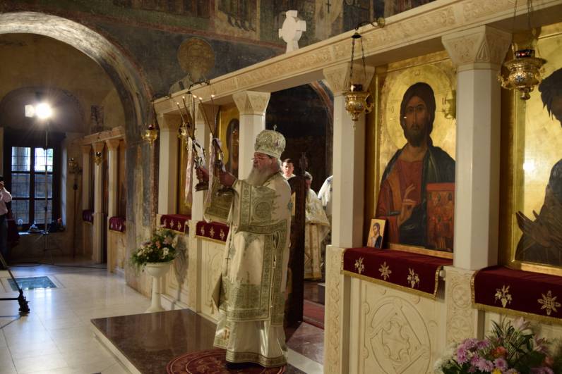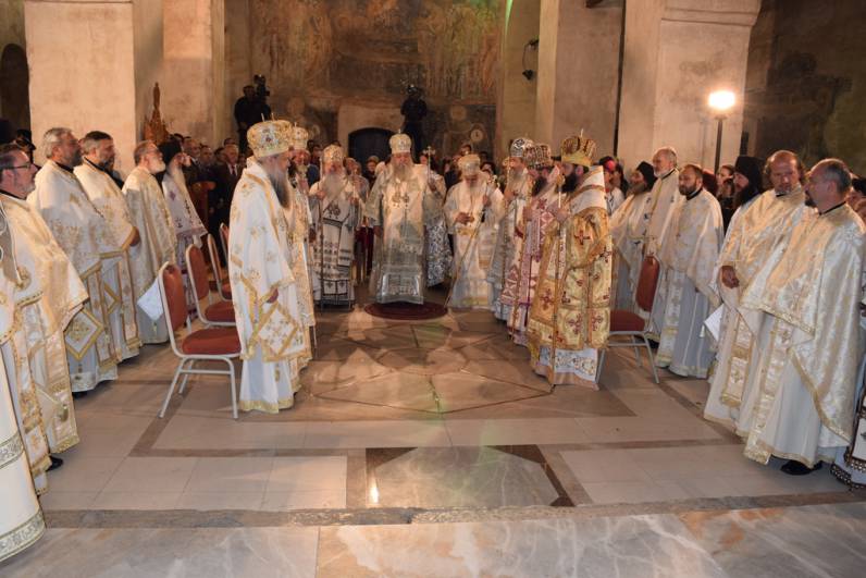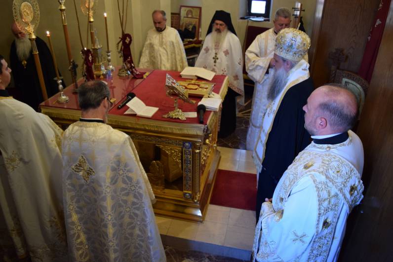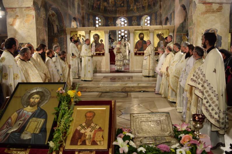 Прославата продолжи утредента, со света Архиерејска Литургија, во храмот „Св. Софија“, на која чиноначалствуваше Архиепископот Охридски и Македонски г.г. Стефан, во сослужение на Митрополитите Тимотеј, Петар, Наум, Агатангел, Пимен, Иларион, Јосиф, Јосиф, Епископот Климент, архимандритите Нектариј и Партениј, протоереј-ставрофорите Јован Таковски, Ацо Гиревски, Блажо Кожарски, Никола Грамбозов и Сашо Богданоски, игумените Агатон и Григориј, протоереите Љупчо Вељаноски, Јован Кумевски, Сашо Николовски и Никола Христоски, свештеникот Димче Азески, протоѓаконите Ратомир Грозданоски, Антoнио Дујовски, Горан Кутлешоски, Саше Ристов и Влатко Стојменов и ѓаконите Сашо Целески и Христијан Костоски. По завршувањето на Литургијата, Митрополитот Петар се обрати кон многубројниот верен народ со пригодна беседа. Потоа се одржа и промоција на делото „Св. Климент Охридски - хагиографија и химнографија“, труд на протоѓаконот Николче Ѓурѓиноски. Виктор Недески и Александар Димоски. Промотивното слово беше на Архиепископот г.г. Стефан.