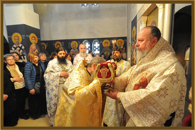 Светата Црква, втората недела од Великиот пост ја посветува на св. Григориј Палама, на оној на кого е посветен и овој свет храм. Овој Божји угодник се прославил со неговиот подвижнички живот. Преку тоа подвижништво, го победил гревот во себе, па затоа, бил удостоен да ја созерцава Божјата несоздадена светлина, и преку тоа светата Црква ја формулира доктрината и учењето на исихазмот, односно на паламизмот. Неслучајно, за време на Великиот пост, Црквата нè потсетува на овој угодник, повикувајќи нè преку пост и молитва да го победиме гревот. Нè повикува да се ослободиме од страстите, па да можеме да се удостоиме, очистени и препородени, да го наследиме царството Божјо и да претвкусиме од него уште во овој живот. По молитвите на св. Григориј Палама, така нека биде. Амин.