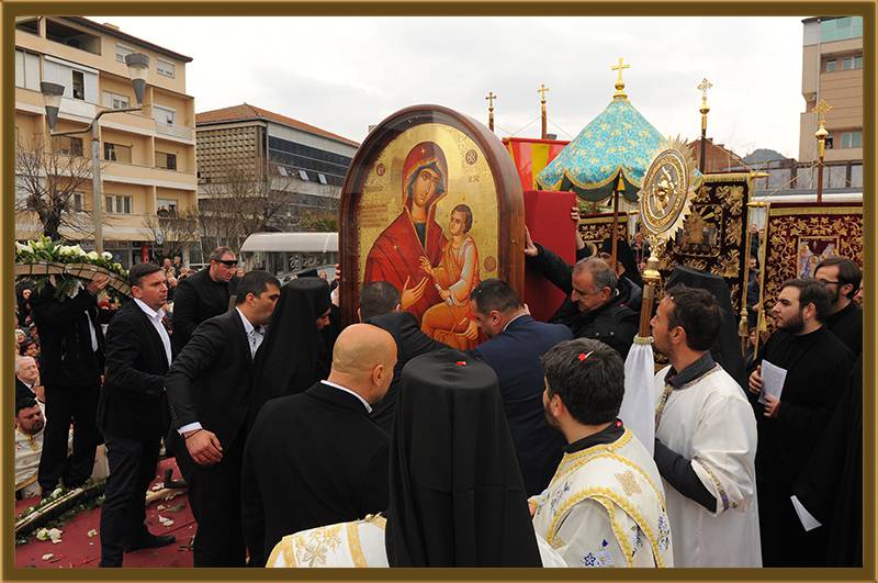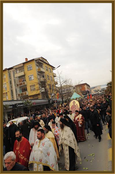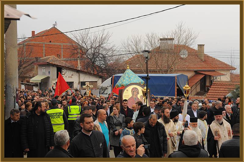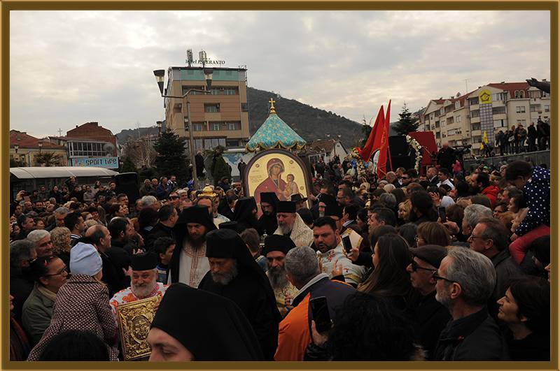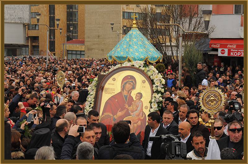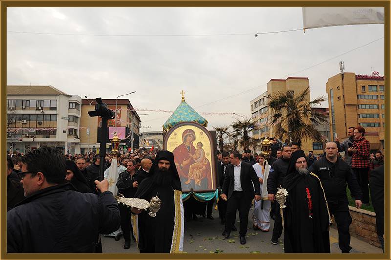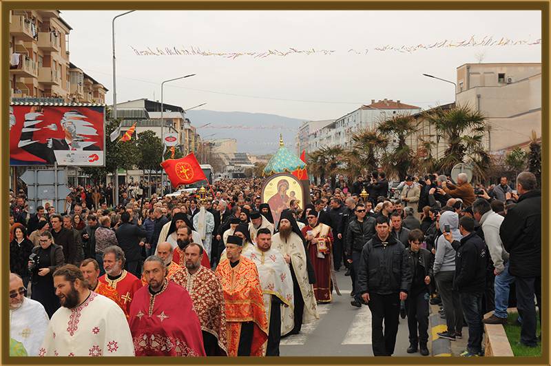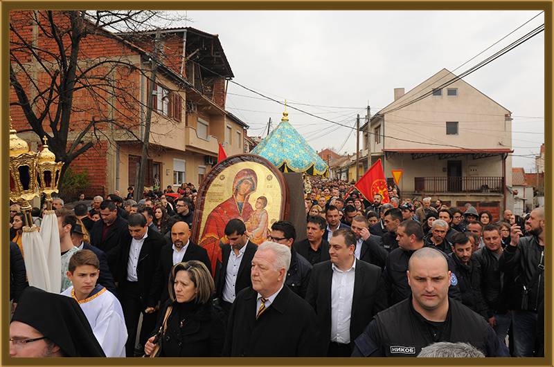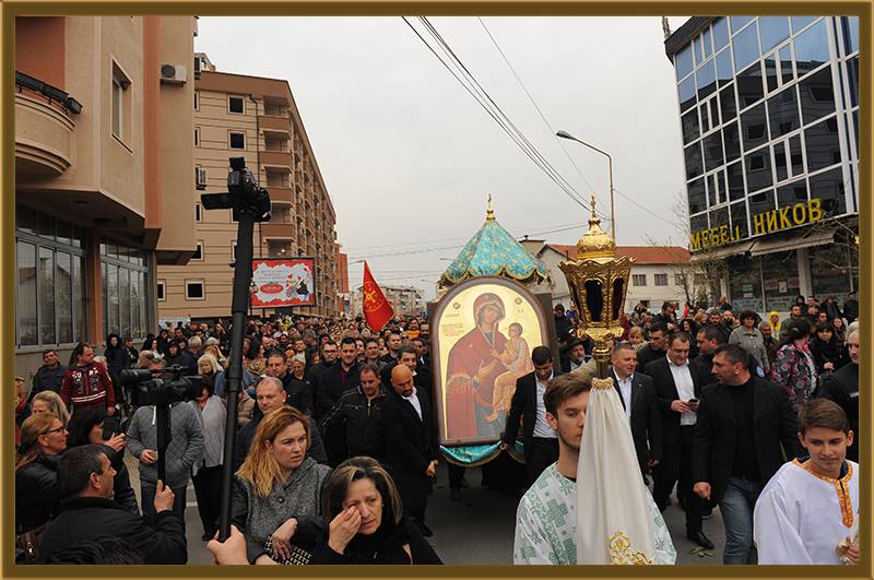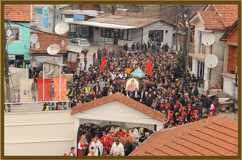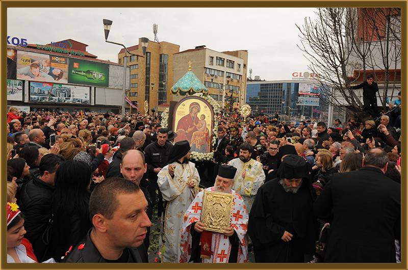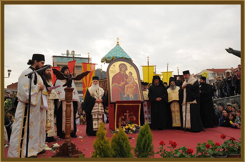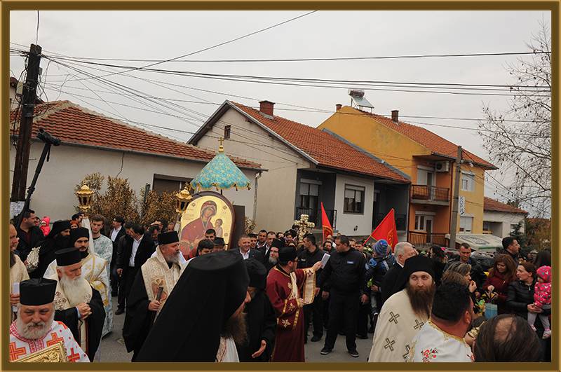 Од градскиот плоштад светата Икона на Пречистата, во раскошна молитвена литија, со учество на нашите возљубени митрополити, бројното свештенство, монаштво, лимениот оркестар на град Скопје и недобројниот верен народ, беше свечено пренесена во храмот на Светите Петнаесет Тивериополски Свештеномаченици, каде што и ќе остане засекогаш.
