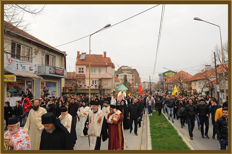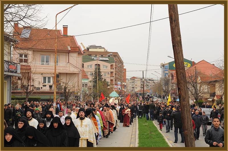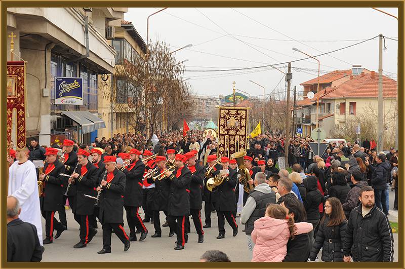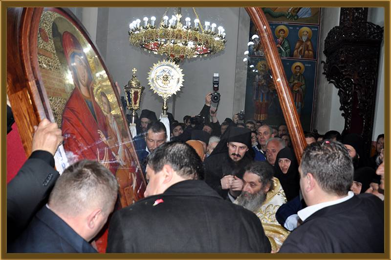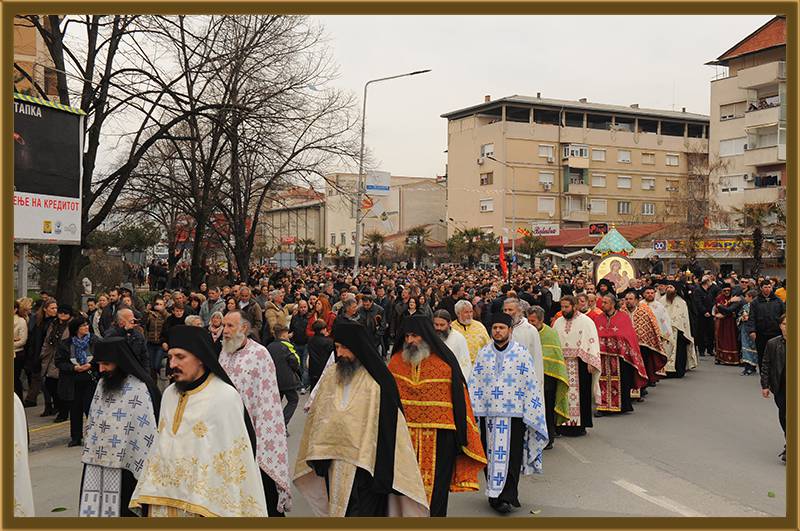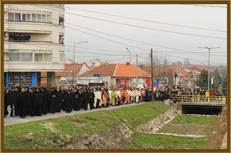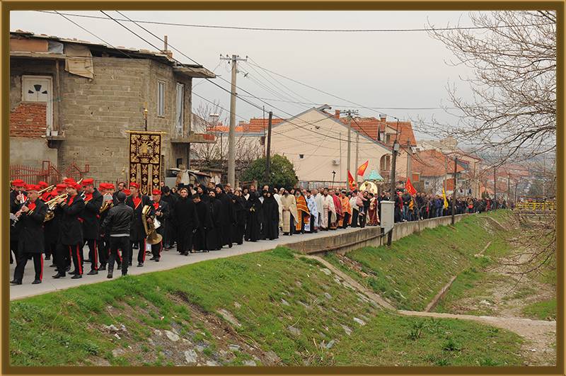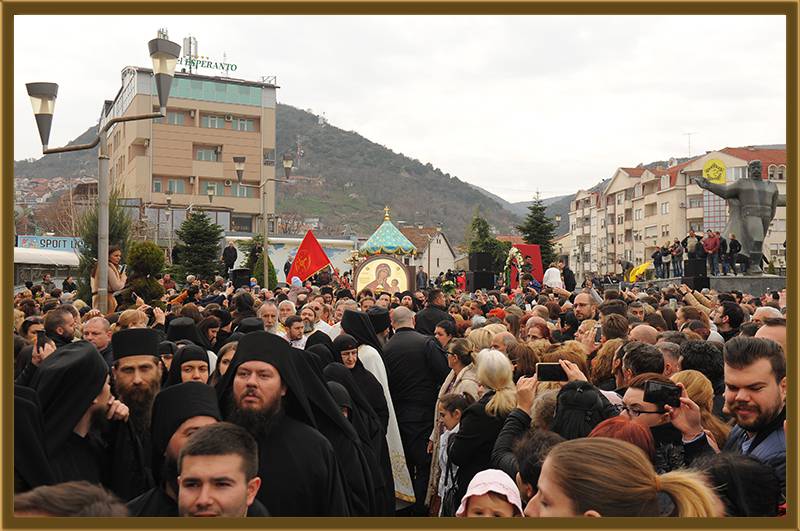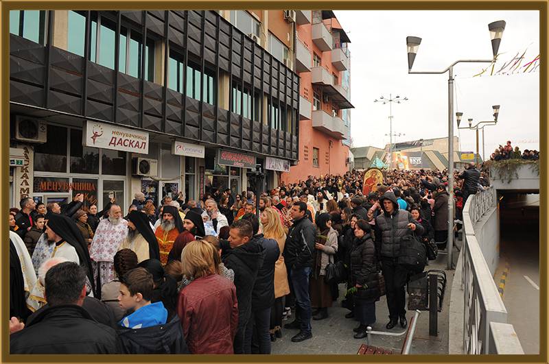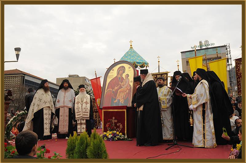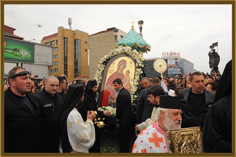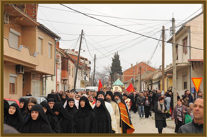 Од градскиот плоштад светата Икона на Пречистата, во раскошна молитвена литија, со учество на нашите возљубени митрополити, бројното свештенство, монаштво, лимениот оркестар на град Скопје и недобројниот верен народ, беше свечено пренесена во храмот на Светите Петнаесет Тивериополски Свештеномаченици, каде што и ќе остане засекогаш.
