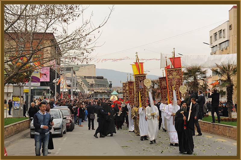 Ми причинува особена чест што можам, во овој извонредно значаен и радосен миг, да се обратам во името на Неговото Високопреосвештенство, Митрополитот г. Наум, како и во името на свештенството и целиот народот!