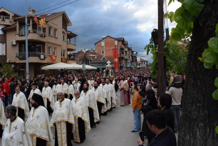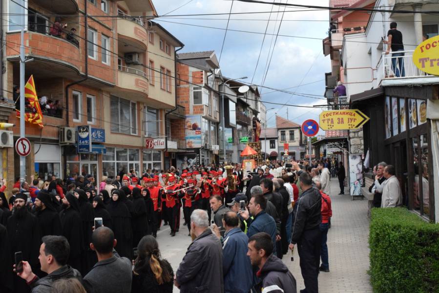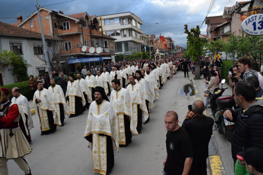На 07.05.2017 година, ден по празникот на светиот вмч. Георгиј, во Неделата на раслабениот, според вековната традиција во Струга, верниот народ уште еднаш се собра да го прослави великиот маченик, кој со својата славна смрт се вброи во диптихот на свидетелите на Христовото Воскресение. Прославата започна утрото, кога во храмот „Св. вмч. Георгиј“ во Струга беше отслужена света архиерејска Литургија, на која чиноначалствуваше Неговото Високопреосвештенство Митрополитот Дебарско-кичевски и Администратор Австралиско-сиднејски г. Тимотеј, во сослужение на Неговото Високопреосвештенство Митрополитот Европски г. Пимен, архимандритот Нектариј, протоереј-ставрофор Илија Танаскоски, протоереите Никола Христоски и Темелко Донески, свештениците Васко Голабоски и Петре Бојчиноски, протоѓаконот Николче Ѓурѓиноски и ѓаконот Христијан Костоски. По завршувањето на Литургијата, Митрополитот Тимотеј се обрати кон верниот народ со пригодно слово, во кое се задржа на евангелскиот настан за чудото со раслабениот, а посочувајќи го гревот како причина за сите наши духовни и телесни болести. Оваа Литургија, како и секоја друга, беше значајна за сите нас, но ќе остане особено запаметена за свештеникот Васко Голабоски, старешина на храмот „Св. вмч. Георгиј“ во Струга, кој од раката на нашиот Митрополит Тимотеј, беше одликуван во протоерејски чин, поради неговите несебични залагања во враќањето на имотот на МПЦ-ОА во Струга, долгогодишната успешна организација на Еордијата во Струга, како и поради неговиот успех на сите полиња како парохиски свештеник и старешина на струшкиот храм. Од името на Митрополитот, свештенството и монаштвото од нашата епархија, како и од сиот верен народ, му го честитаме протоерејскиот чин на отец Васко, со молитви уште долги години верно да Му служи на Бога и на светата Македонска православна црква.