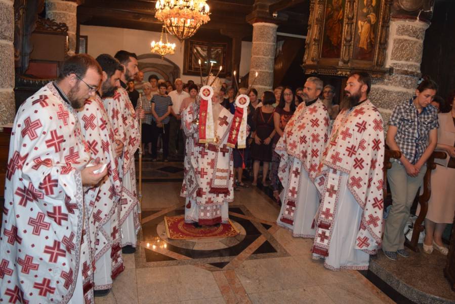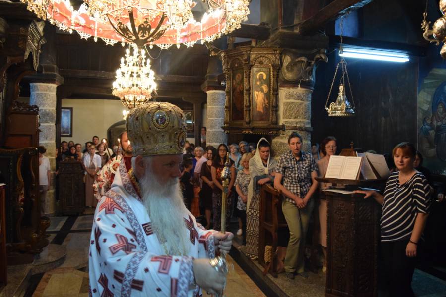 На овој радосен и велик ден, на 19,08,2017 година, во храмот „Св. вмч. Ѓорѓи“ во Охрид, беше отслужена света архиерејска Литургија, на која чиноначалствуваше Неговото Високопреосвештенство Митрополитот Дебарско-кичевски и Администратор Австралиско-сиднејски г. Тимотеј, во сослужение на протоереј-ставорофорите Никола Христоски, Сашо Богданоски и Димче Ѓорѓиески, протоерејот Игор Никовски, свештеникот Владо Недески и протоѓаконот Николче Ѓурѓиноски. На овој велик ден имаме уште еден повод за радост. Имено, денеска беше обнародена Одлуката на Светиот архиерејски синод на Македонската православна црква - Охридска архиепископија, донесена на предлог на нашиот надлежен Митрополит Тимотеј, со која протоерејот Игор Никовски беше награден со право на носење граден Крст, со што ја доби титулата протоереј-ставрофор. Митрополитот Тимотеј го даде овој предлог поради посветената работа на протоерејот Игор, и тоа од неговите почетоци како свештенослужител во Светиклиментовиот манастир, па како секретар на Дебарско-кичевската епархија, но и сега како парохиски свештеник во храмот „Св. вмч. Ѓорѓи“ во Охрид. Како особена заслуга, Митрополитот Тимотеј ја истакна улогата на отец Игор во уредувањето на целиот циклус на богослужбени книги, кои беа преведени на македонски јазик. По завршувањето на Литургијата, според црковната традиција, беше осветен годинешниот лозов плод, а потоа Митрополитот Тимотеј се обрати кон верниот народ со пригодна беседа, која интегрално ви ја пренесуваме.