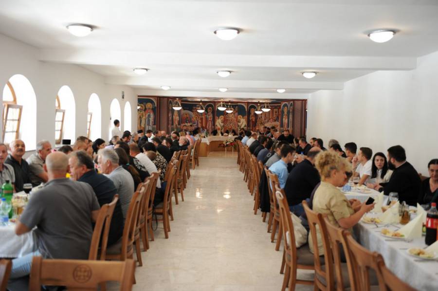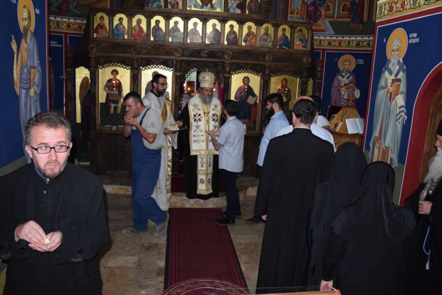 Прославата продолжи утредента, со света архиерејска Златоустова Литургија, на која чиноначалствуваше Неговото Блаженство Архиепископот Охридски и Македонски г.г. Стефан, во сослужение на Митрополитите Тимотеј, Петар, Агатангел и Иларион, епископот Климент, архимандритите Нектариј и Партениј, игуменот Јаков, протоереј-ставрофорите Тоди Јован, Никола Христоски, Димче Ѓорѓиески и Игор Никовски, протоереите Стевчо Тошевски и Васко Голабоски, свештениците Димче Азески, Горан Ставрески, Владо Недески, Александар Матески и Роберт Илијевски, протоѓаконите Ратомир Грозданоски, Саше Ристов, Николче Ѓурѓиноски и Драган Ѓорѓиевски и ѓаконите Дејан Борисов, Сашо Целески, Христијан Костоски и Александар Димоски. По завршувањето на Литургијата, беше осветен новиот конак, а Митрополитот Тимотеј се обрати кон многубројниот верен народ со пригодна беседа, која подолу интегрално ви ја пренесуваме.