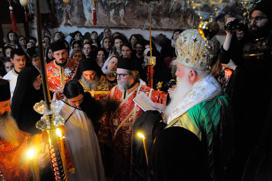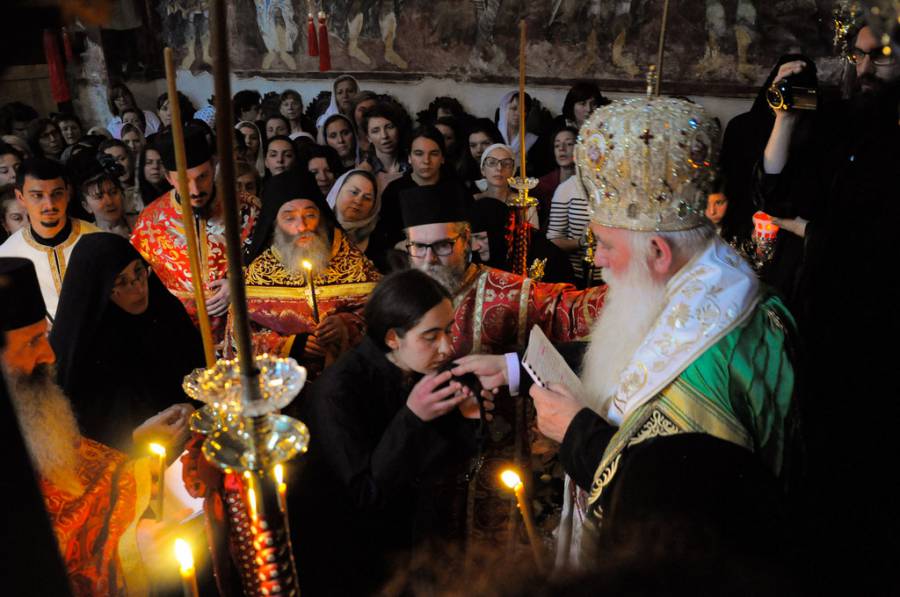Вечерва присуствуваме на еден извонреден чин, посветување на Бога на една млада личност, која се откажува од овој свет угледувајќи се на Божјите угодници. Следејќи го нивниот пат да го помине својот живот во молитва и послушание, а во заедница со сестринството на оваа света обител. Под закрилата на светиот вмч. Георгиј, да може да ги пребродува сите искушенија и страдања што животот неминовно ги носи во овој преоден живот. Угледувајќи се сестро Серафима на св. вмч. Георгиј и на сите свети маченички што вечерва ги спомнавме при чинот на монашењето, нека ти бидат пример и углед во твојот подвижнички живот, па достоинствено и чесно да го носиш монашкиот образ за прослава на Бога, за афирмација на оваа света обител, а за спасение на твојата душа.