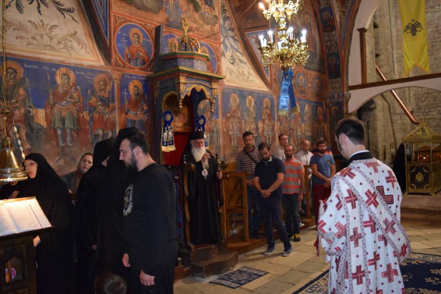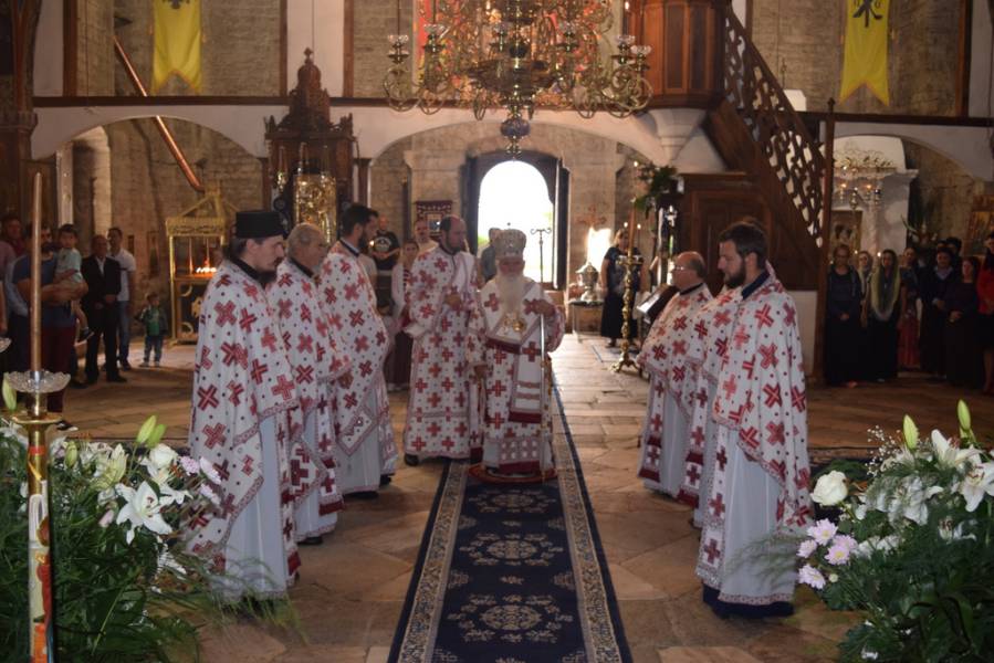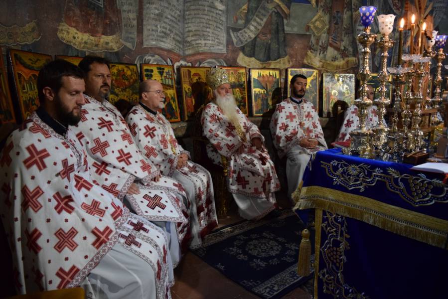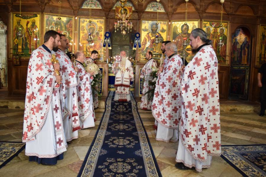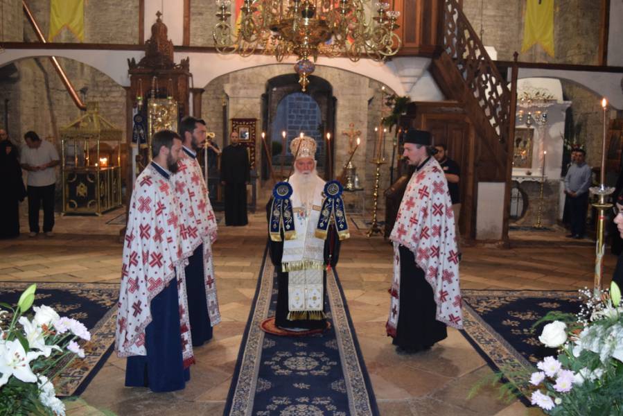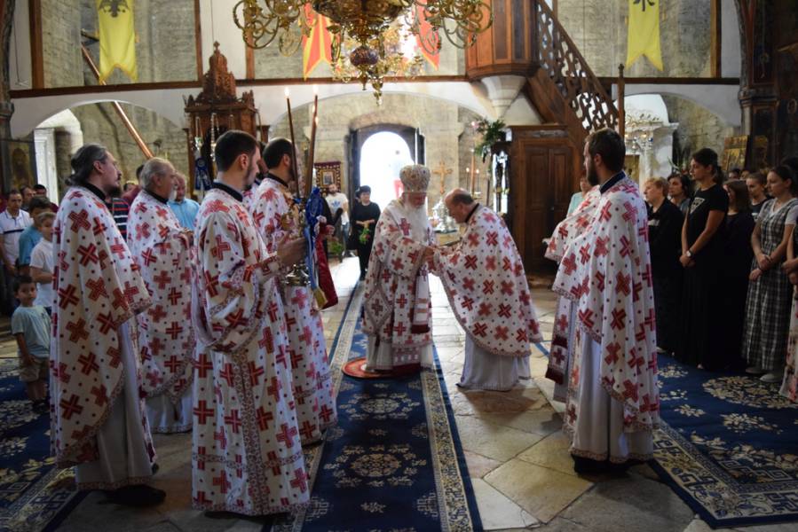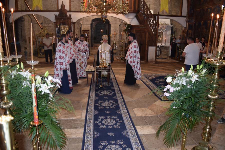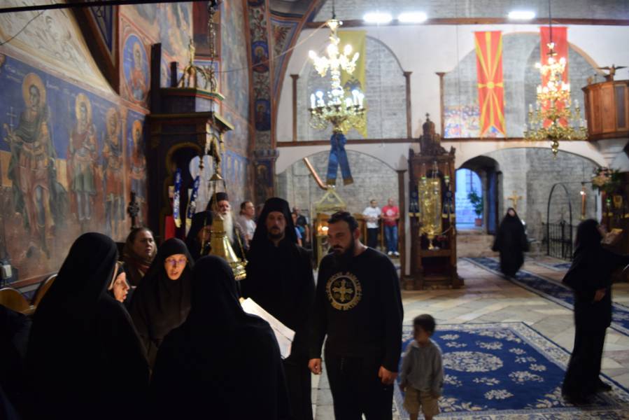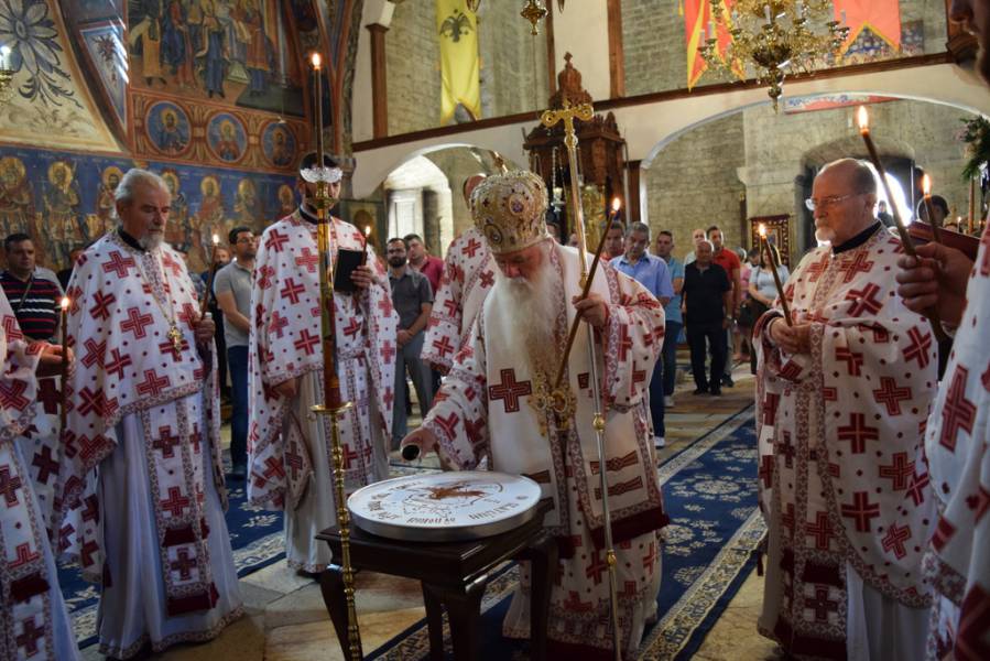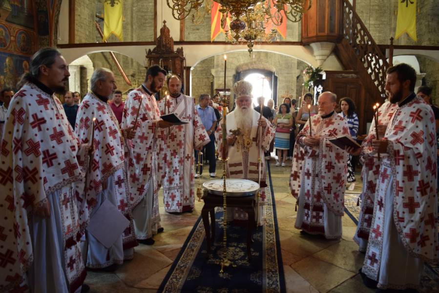 Утредента, на 02 август, беше отслужена света архиерејска Литургија, на која чиноначалствуваше Митрополитот Тимотеј, во сослужение на протоереј-ставрофорите Спасе Стефановски, Стојан Јанковски и Никола Христоски, протоерејот Сашо Додевски, еромонахот Ефросиниј, свештеникот Александар Матески, протоѓаконот Николче Ѓурѓиноски и ѓаконот Христијан Костоски. По завршувањето на Литургијата, беше отслужен и Парастос за сите порано упокоени православни браќа и сестри, кои својот живот го положиле за слободата на Татковината и Црквата. За време на Литургијата, како знак на благодарност за нивната животна посветеност и пожртвуваност за Македонската православна црква, Митрополитот Тимотеј им подари по еден прекрасен граден крст на протоереј-ставрофорите Спасе Стефановски и Стојан Јанковски. На самиот крај, беше прочитано и Илинденското послание, со кое Неговото Блаженство Архиепископот Охридски и Македонски г. г. Стефан, заедно со членовите на Светиот архиерејски синод на Македонската православна црква - Охридска архиепискпопија, им го честита големиот празник на сите верни чеда. Истото ви го пренесуваме во целост.