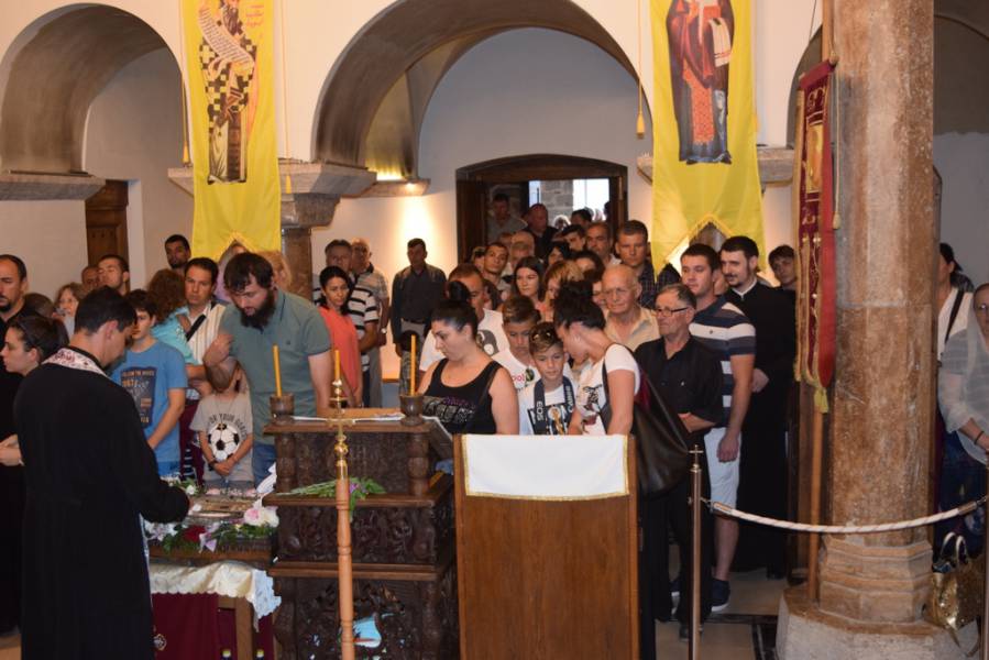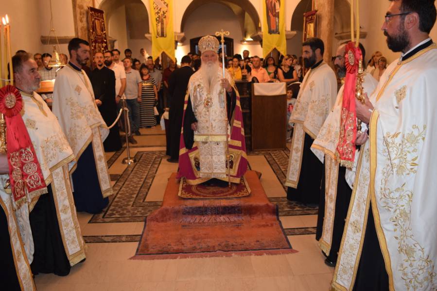 Торжествувањето на великиот проповедник, наследникот на апостолите, кој го упати нашиот народ во Божјата вистина и го направи избран народ, светиот Климент Охридскиот Чудотворец, како и на светиот великомаченик и целител Пантелејмон и на светите Седмочисленици, започна на 08 август, со Празнична вечерна богослужба, во манастирот „Св. Климент и Пантелејмон“ на Плаошник во Охрид, на која чиноначалствуваше Неговото Високопреосвештенство Митрополитот Дебарско-кичевски и Администратор Австралиско-сиднејски г. Тимотеј, во сослужение на протоереј-ставрофорите Никола Христоски и Димче Ѓорѓиески, свештениците Кирил Јованоски, Горан Ставрески, Александар Димоски и Сашо Целески и протоѓаконот Николче Ѓурѓиноски. По завршувањето на Вечерната богослужба, Митрополитот Тимотеј се обрати кон неизбројниот верен народ со пригодна беседа, која подолу во целост ви ја пренесуваме. Во подоцнежните часови, пред моштите на Охридскиот светител, беше отслужен и Акатист на свети Климент Охридски.