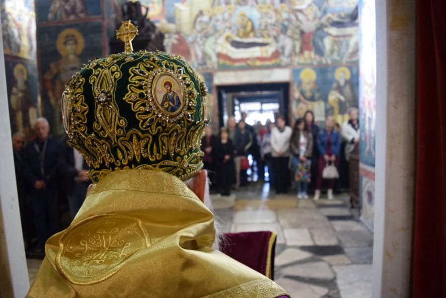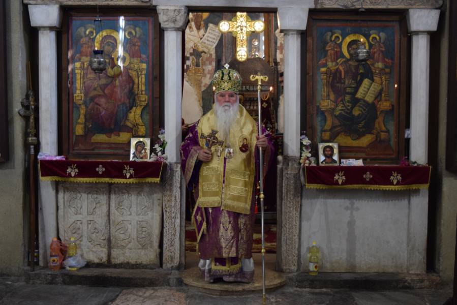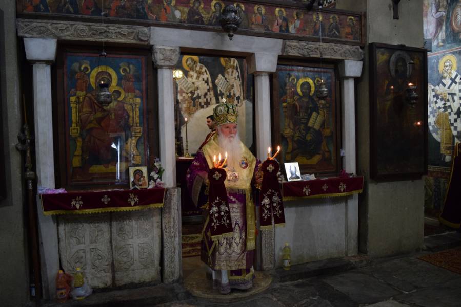 Но, ние денеска, посебно се собравме во овој свет храм, да го прославиме и св. Константин Кавасила, кој свидетелствувал на Охридскиот архиепископски престол во XIII век, проповедајќи го Евангелието на нашите предци. Неговиот живот не бил исполнет само со проповеди, односно со зборови, туку, тој живеел евангелски живот, и затоа, многу брзо по неговото скончание, бил прифатен од охридската паства како Божји угодник. Веќе на крајот на XIII век, неговиот свет лик го наоѓаме низ охридските цркви, а особено доминантна е неговата претстава во овој свет храм, посветен на Пресвета Богородица, претставен, веднаш до патронот на нашиот град, до св. Климент Охридскиот Чудотворец.
