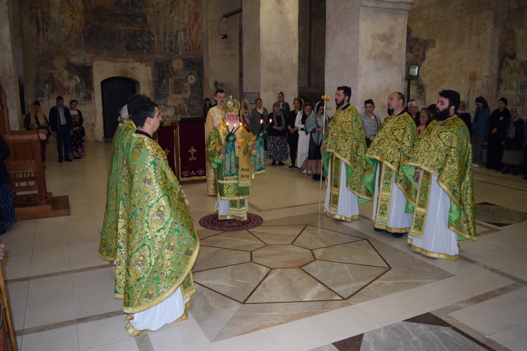 И ние, наоѓајќи се денеска во овој свет храм, да ги отфрлиме сите страсти и гревови, па да Го примиме Светиот Дух во себе. Тој да нѐ води во животот и преку Него да добиеме милост Божја и да спечалиме вечен и блажен живот. Амин.