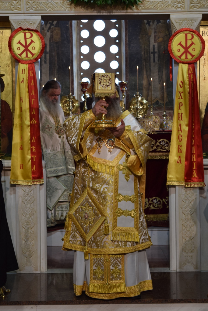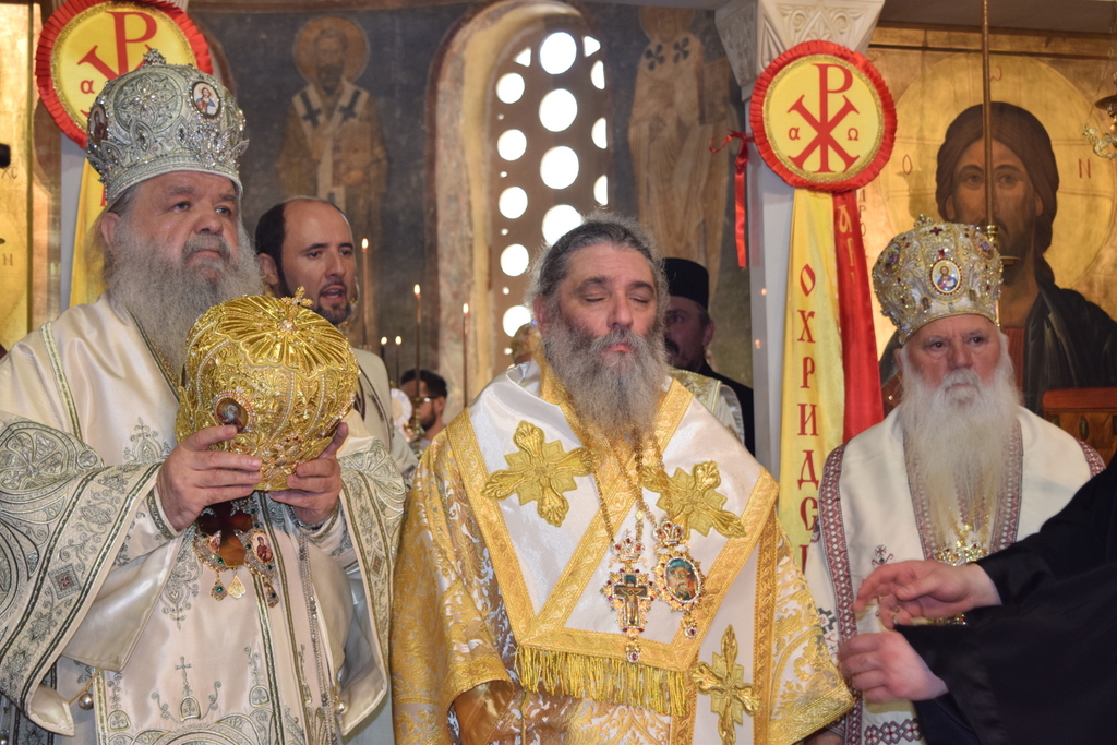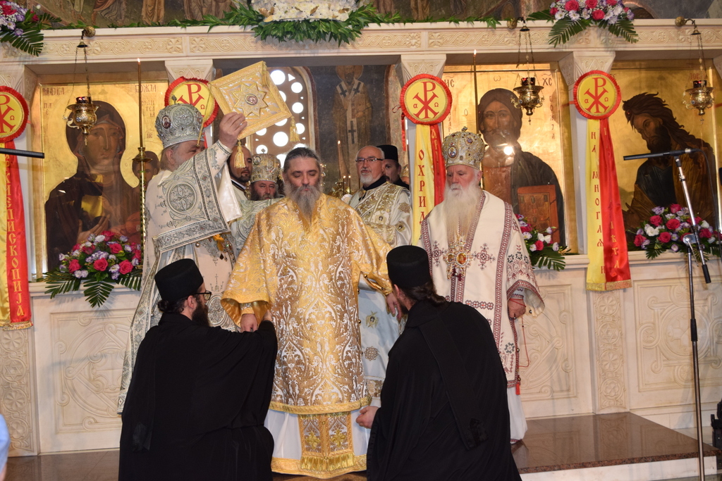 Внимавај и чувај ја довербата што ти се дава и, по молитвите на светиот Јован, Претечата и Крстителот Господов, на светите првоврховни апостоли Петар и Павле и на светите Климент и Наум, охридските чудотворци, сите твои постапки и дела нека бидат за доброто на нашите народ и Црква, та во сѐ да се прослави Бог преку Исуса Христа, чија слава и владеење се вечни .