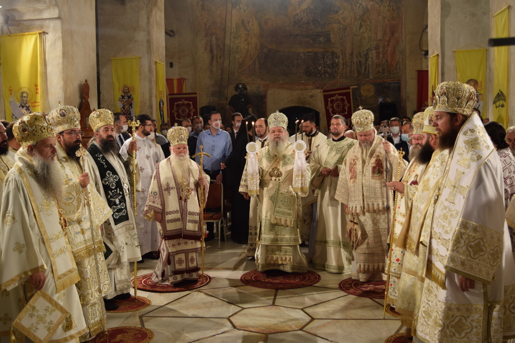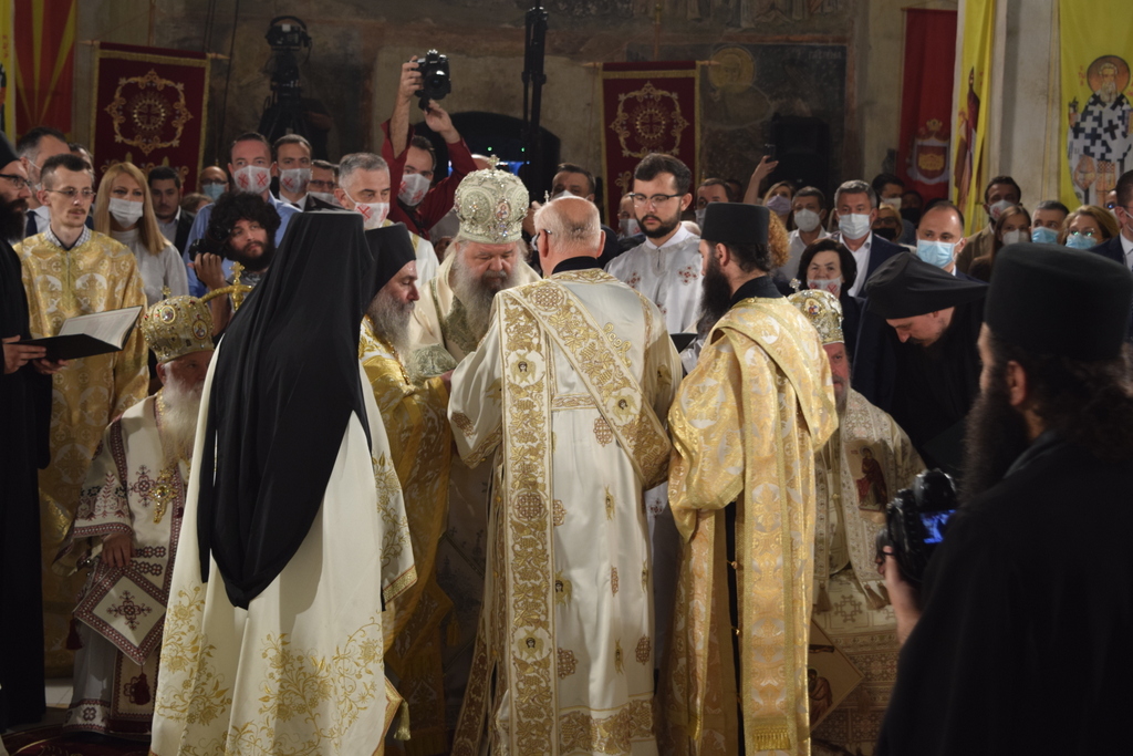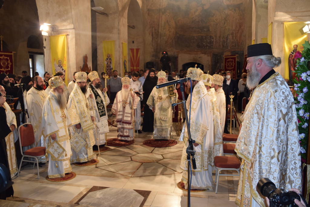 Накрај би сакал уште еднаш да ви се заблагодарам на сите и да ги побарам вашите молитви, за да можам со непосрамен образ да го износам архијерејскиот крст, во слава на Триединиот Бог наш и за доброто на поверената ми паства. Нека апостолскиот благослов се спушти врз сите нас, како и врз целото општество, разбранувано од бројни искушенија, та по молитвите на Светите Апостоли, Христовата Црква да извојува победа над злите сили и да остане неповредено нејзиното свето предание, традициите и начинот на живот во неа. Што и да се случува денес во светот, ние, Христијаните, не смееме да дозволиме стравот да ја надвладее нашата љубов кон ближниот и силната вера во промислата Божја. Всушност, од што би се плашеле, доколку ги имаме постојано пред нас зборовите на денешниот славеник, великиот Апостол Павле, кој вели: вие не примивте дух на ропство, за да бидете во страв, туку Го примивте Духот на посинувањето, преку Кого велиме: „Ава, Оче!"