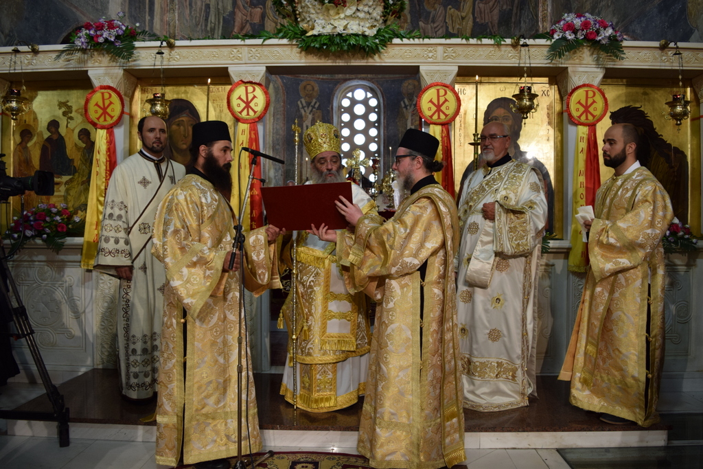 Денес, на празникот на светите првопрестолни апостоли Петар и Павле, со силата на Пресветиот и Животворен Дух, во заедничката молитва со присутниот народ Божји, и преку возложените раце на архијереите, ти постана епископ во Црквата Христова и приемник на апостолското служење.