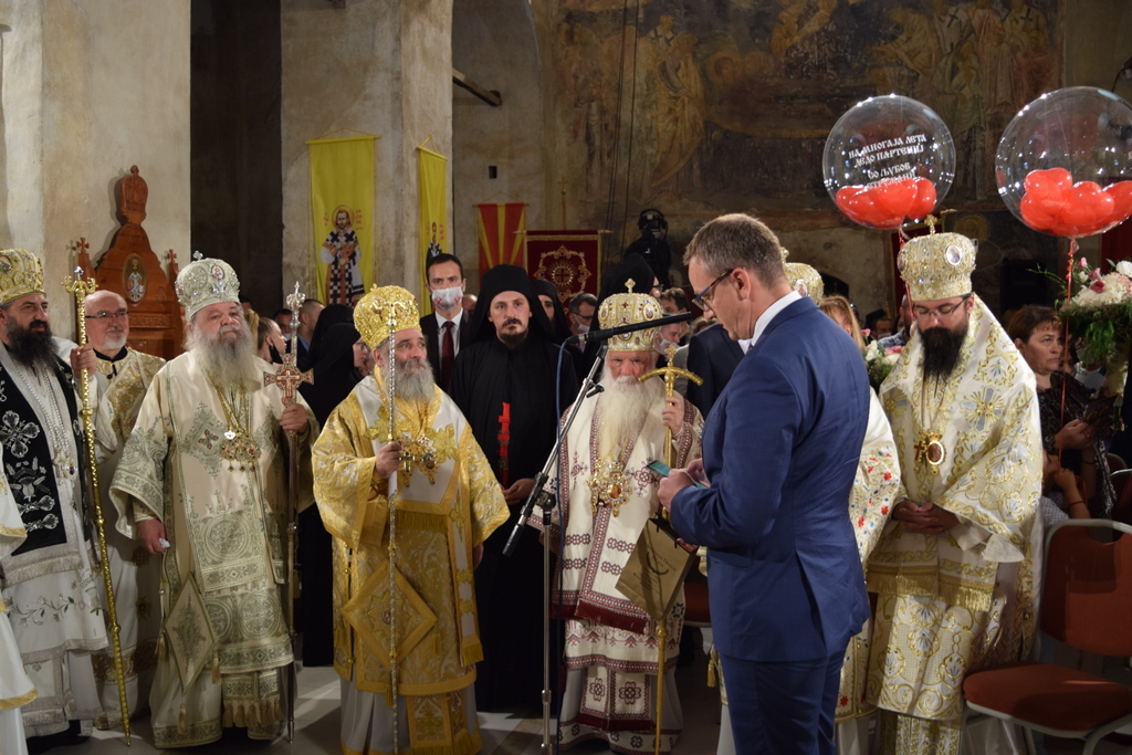 На овој свечен чин за нашата света Црква, присуствуваа многубројни гости, претставници на Владата на РМ, на локалната самоуправа, на Римокатоличката црква, на политичките партии, на Универзитетите и други многубројни гости. Меѓу присутните беа: Министерот за одбрана, г-ѓа Радмила Шекеринска, Министерот за здравство, г-дин Венко Филипче, Бискупот Скопски г. Киро Стојанов, претседателот на Комисијата за односи со верските заедници и религиозни групи г. Даријан Сотировски, ректорот на Универзитетот „Св. Кирил и Методиј“ д-р Никола Јанкуловски, ректорот на Универзитетот „Св. Климент Охридски“ г-дин Сашо Коруноски, градоначалникот на општина Охрид д-р Константин Ѓеорѓиески, претседателот на ВМРО-ДПМНЕ г-дин Христијан Мицковски и многу други уважени гости.