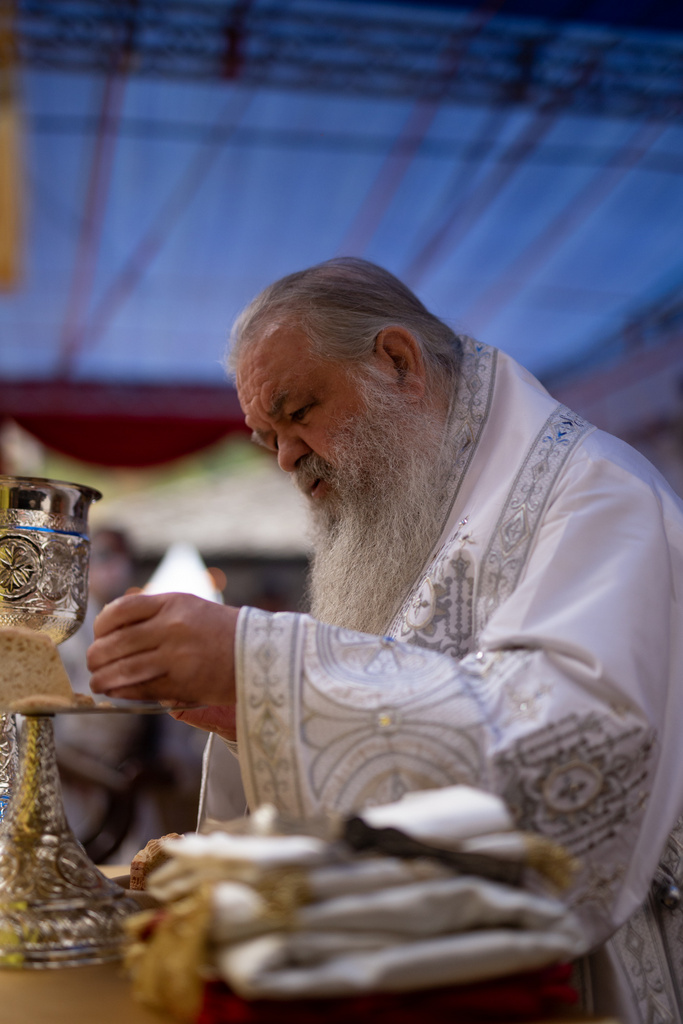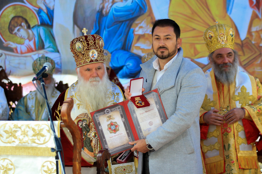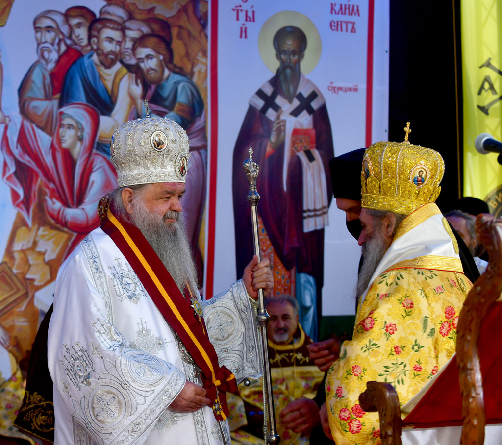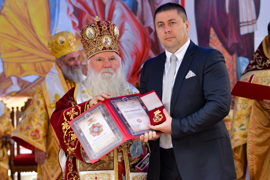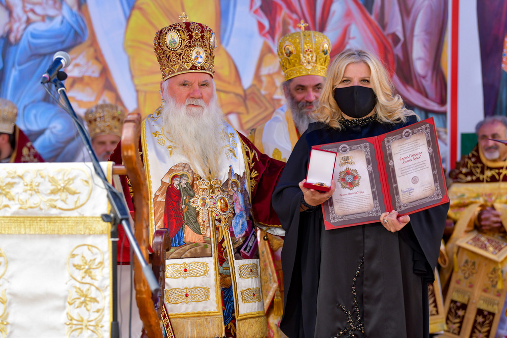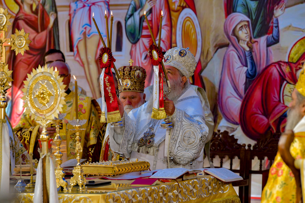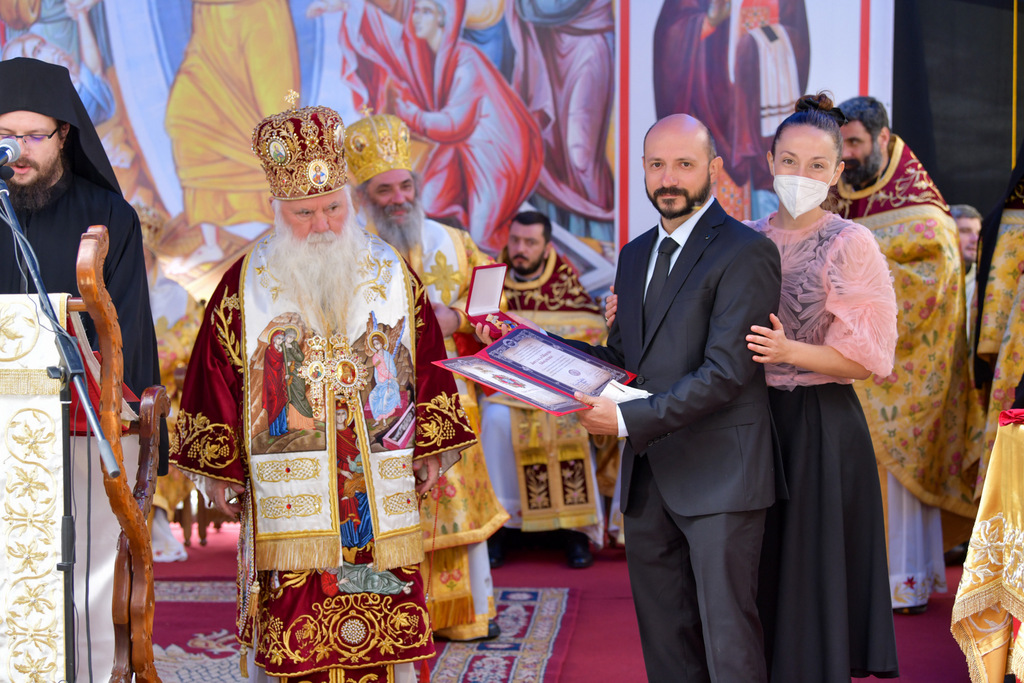 А како поинаку да се прослави ваков историски настан, освен со светата Евхаристија, на Христа најмилата Жртва. Токму затоа, на 18.10.2020 година, во Деветнаесеттата недела по Педесетница (во Неделата на св. отци од VII Вселенски собор), и на празникот на св. мч-ца. Харитина и на св. свешт-мч. Дионисиј Александриски, беше отслужена света архиерејска Литургија, на којашто чиноначалствуваше Неговото Блаженство Митрополитот Скопски и Архиепископ Охридски и Македонски и на Јустинијана Прва г.г. Стефан, во сослужение на Митрополитите Тимотеј, Петар, Иларион, Јосиф и Григориј, Епископите Климент, Јаков и Партениј, архимандритот Нектариј, протоереј-ставрофорите Никола Христоски, Никола Грамбозов, Илија Димитриевски, Димче Ѓорѓиески и Бојан Димков, игумените Фотиј и Агатон, протоерејот Васко Голабоски, еромонасите Доситеј и Макариј, свештениците Александар Матески и Александар Димоски, протоѓаконите Ратомир Гроздановски, Николче Ѓурѓиноски и Драган Ѓорѓиевски и ѓаконите Александар Димитријов и Драган Иванов. По завршувањето на Литургијата, Епископот Антаниски г. Партениј, игумен на Бигорската обител, му го додели највисокото милениумско одликување на свештената Бигорска обител - лента со ѕвезда и крст со ликот на чесниот Претеча на Архиепископот Охридски и Македонски г.г. Стефан, кој веднаш потоа имаше свое пригодно обраќање кон многубројниот верен народ. Истото подолу ви го пренесуваме во целост.