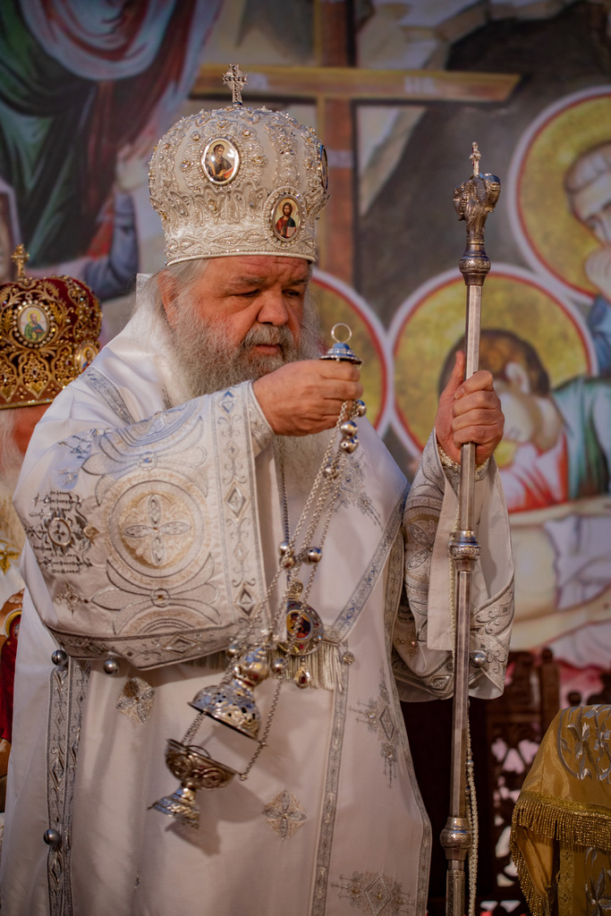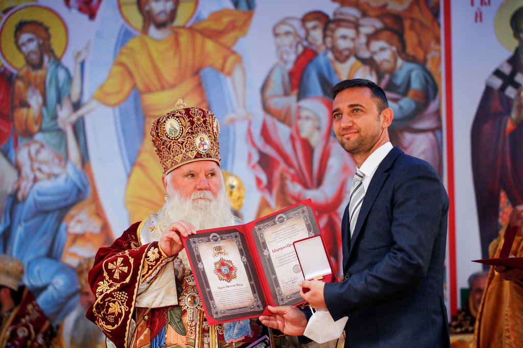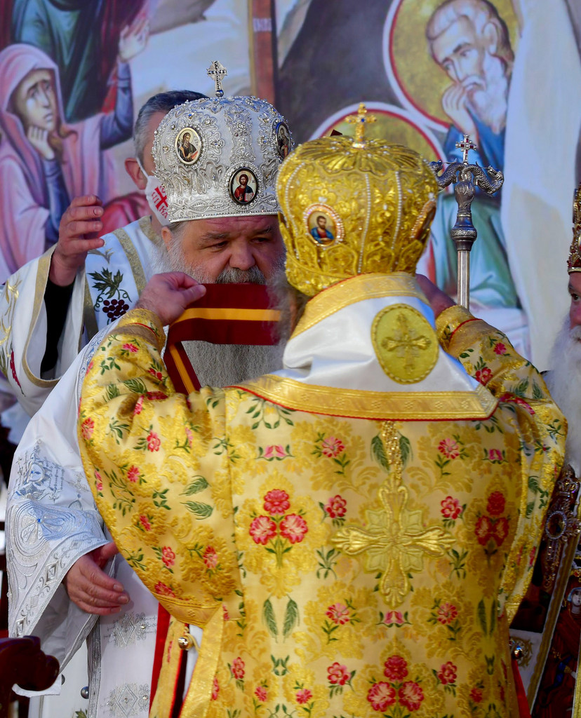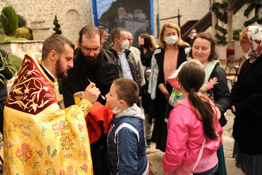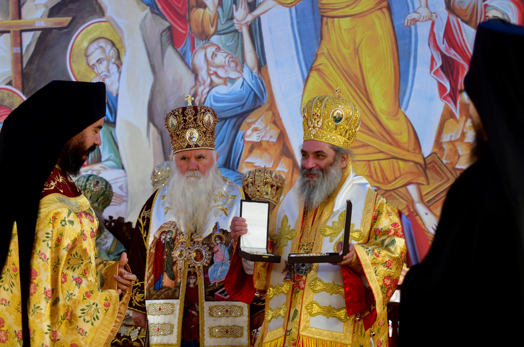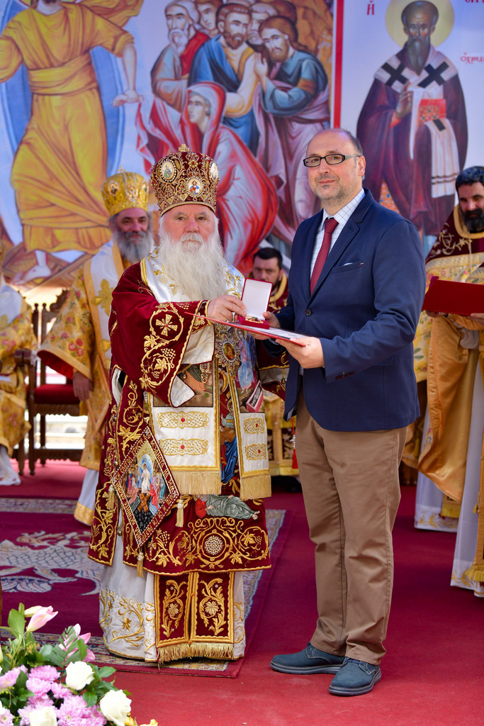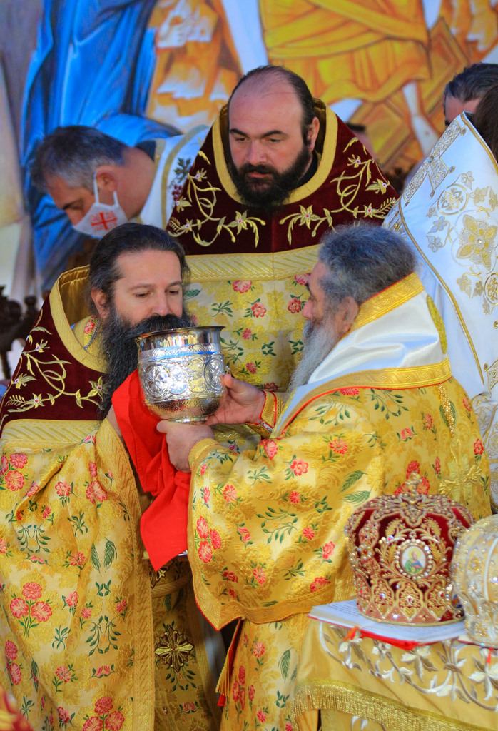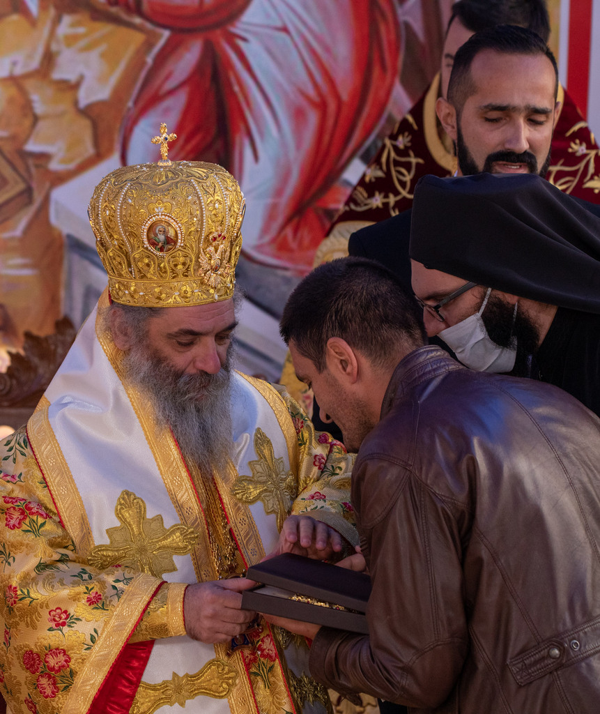 А како поинаку да се прослави ваков историски настан, освен со светата Евхаристија, на Христа најмилата Жртва. Токму затоа, на 18.10.2020 година, во Деветнаесеттата недела по Педесетница (во Неделата на св. отци од VII Вселенски собор), и на празникот на св. мч-ца. Харитина и на св. свешт-мч. Дионисиј Александриски, беше отслужена света архиерејска Литургија, на којашто чиноначалствуваше Неговото Блаженство Митрополитот Скопски и Архиепископ Охридски и Македонски и на Јустинијана Прва г.г. Стефан, во сослужение на Митрополитите Тимотеј, Петар, Иларион, Јосиф и Григориј, Епископите Климент, Јаков и Партениј, архимандритот Нектариј, протоереј-ставрофорите Никола Христоски, Никола Грамбозов, Илија Димитриевски, Димче Ѓорѓиески и Бојан Димков, игумените Фотиј и Агатон, протоерејот Васко Голабоски, еромонасите Доситеј и Макариј, свештениците Александар Матески и Александар Димоски, протоѓаконите Ратомир Гроздановски, Николче Ѓурѓиноски и Драган Ѓорѓиевски и ѓаконите Александар Димитријов и Драган Иванов. По завршувањето на Литургијата, Епископот Антаниски г. Партениј, игумен на Бигорската обител, му го додели највисокото милениумско одликување на свештената Бигорска обител - лента со ѕвезда и крст со ликот на чесниот Претеча на Архиепископот Охридски и Македонски г.г. Стефан, кој веднаш потоа имаше свое пригодно обраќање кон многубројниот верен народ. Истото подолу ви го пренесуваме во целост.
