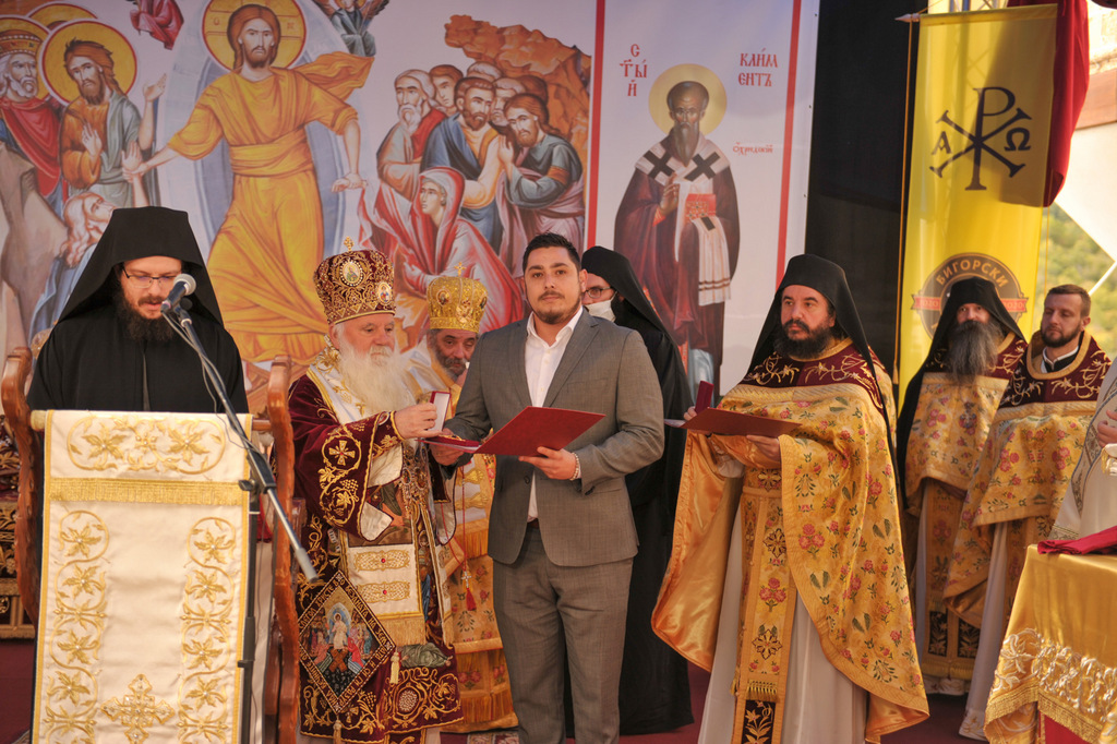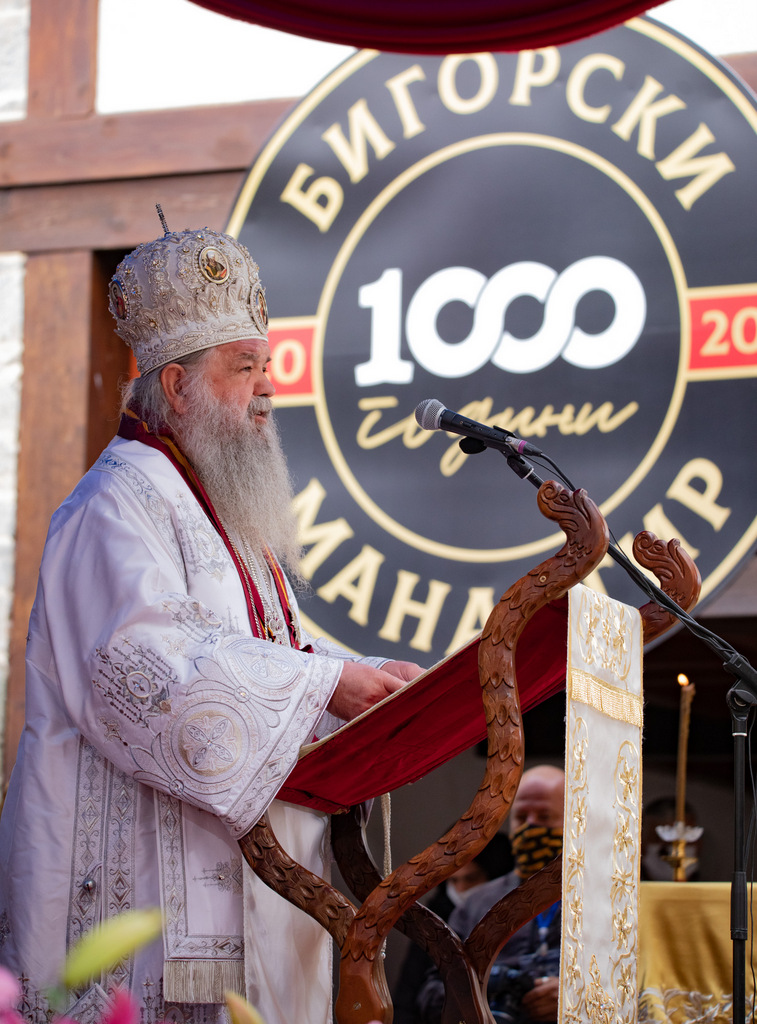 Бог нека го благословува и умножува делото на оваа наша илјадагодишна обител, а за доброто на нашиот благочестив народ и на нашата МПЦ – ОА! Да се молиме на Господа и на патронот св. Јован Крстителот – на Бигорскиот манастир да му се множат годините и вековите, заедно со Македонската Црква и држава! – Амин!