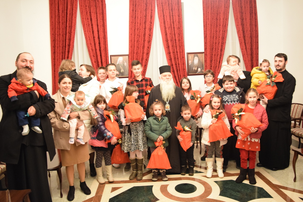 Денот на Рождеството Христово е ден за радост, зашто откако Несместливиот се смести во утробата на Дева, денеска се раѓа за да ја порази силата на древниот непријател и да нѐ избави од неговите окови. Но, на Младенецот, секако, Му се радуваат младенците - најмладите. Затоа, иако во вонредно време, дедо Владика (Митрополитот Тимотеј) им подари Божикни пакетчиња на најмладите и им го честита денот на Христовото Рождество со торжествениот поздрав: Христос се роди!, та и од устите на младенците да се слави Оној Кој е Љубов и Слава!