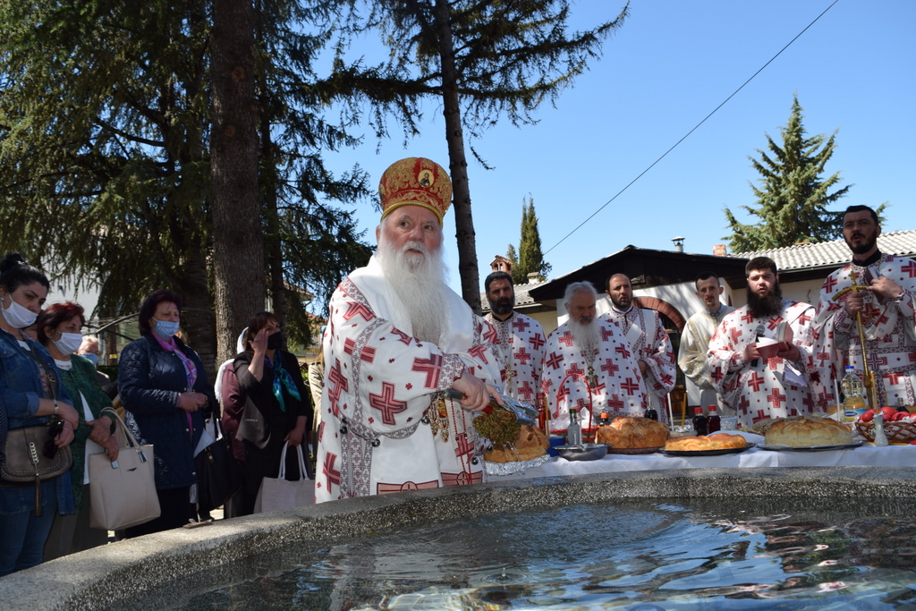 На 06.05.2021 година, во Четвртокот од Светлата седмица и на празникот на св. вмч. Ѓорѓи - Ѓурѓовден, во храмот „Св. вмч. Ѓорѓи“ во Охрид, беше отслужена света архиерејска Литургија, на којашто чиноначалствуваше Неговото Високопреосвештенство Митрополитот Плаошко-струшки и Дебарско-кичевски и Администратор Австралиско-сиднејски г. Тимотеј, во сослужение архимандритот Нектариј, протоереј-ставрофорите Никола Христоски, Димче Ѓорѓиески и Игор Никовски, свештениците Горан Ставрески, Ѓорѓи Блажевски и Љупчо Бакрачески, протоѓаконот Николче Ѓурѓиноски и ѓаконот Васил Михајлоски. По завршувањето на Литургијата, беше извршен чинот на Водосвет во Светла седмица и беше прекршен празничниот колач, а Митрополитот Тимотеј се обрати кон верниците со пригодна беседа, којашто интегрално ви ја пренесуваме.