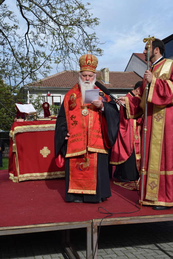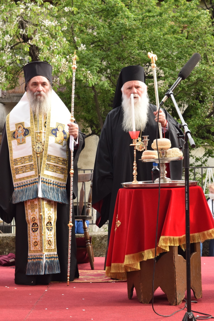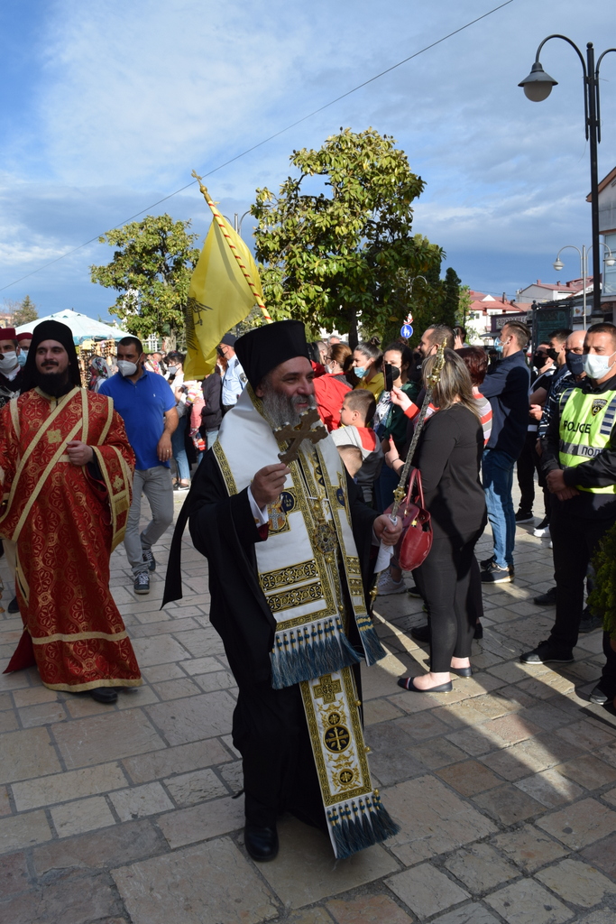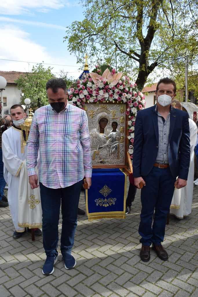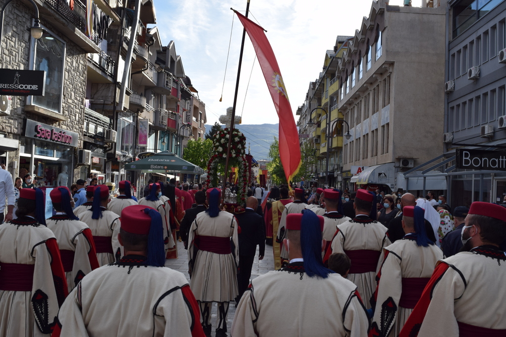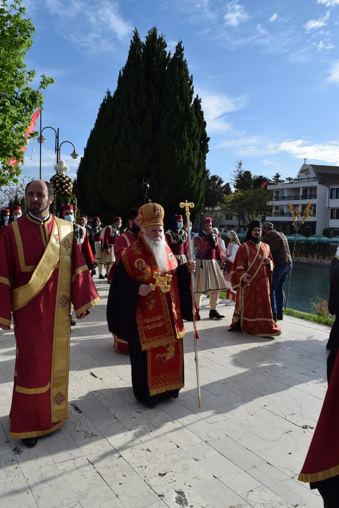 Токму таа вера дека Христос воскреснал, ја посведочиле илјадници маченици и исповедници, кои пред лицето на смртта пројавиле непоколеблива мажественост и храброст кои ги вовеле во вечниот живот. Еден од многубројните маченици е и свети великомаченик Георгиј Победоносец, чиј спомен денес во Струга на посебен начин го прославуваме. Тоа го правиме со литија на која ги носиме неговите чудотворни мошти и неговата света икона. Свети Георгиј ја жртвувал својата младост, својата кариера, своето богатство и храбро застанал во одбрана на верата Христова, знаејќи дека ќе биде подложен на различни маки и страдања. Но, токму поради неговата силна и непоколеблива вера, која ја исповедал и посведочил, Бог му дал благодат и сила да може да ги поднесе сите тие маки и да остане неповреден, покажувајќи многубројни натчовечки чуда. На крај, го завршил маченички својот живот. Од тогаш се поминати повеќе од 17 века. Но, неговото свето име е прославувано во светата православна Црква, а тој, пак, се застапува пред престолот на Севишниот за сите кои со вера и надеж му се обраќаат. Па и ние, кои го прославуваме овој Божји угодник, да ги очистиме нашите срца и души од секакви нечистотии и да се удостоиме Христос да воскресне и во нашите срца, мисли и чувства. Да одиме по Неговиот пат и да се надеваме на Божјата милост, за спасение на нашите души. Амин!