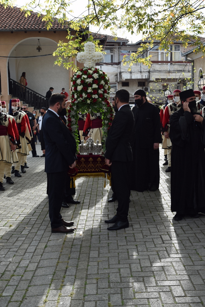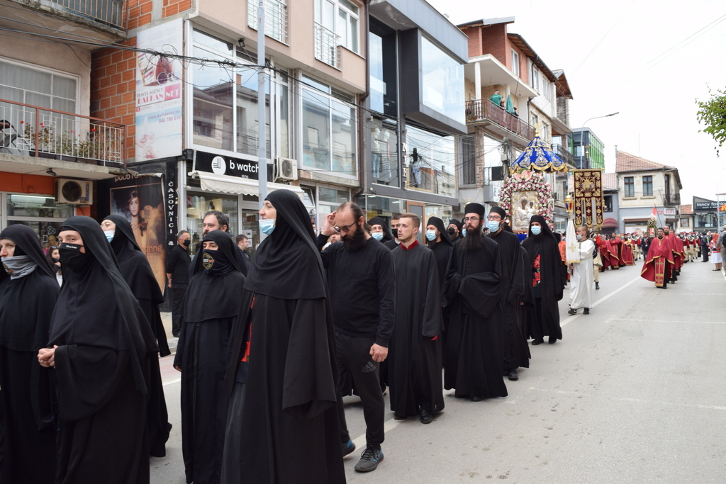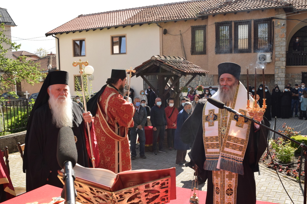 На 07.05.2021 година, вториот ден по празникот на светиот великомаченик Ѓорѓи Победоносец, во вечерните часови, во храмот „Св. вмч. Ѓорѓи“ во Струга, беше отслужена Вечерна богослужба, на којашто чиноначалствуваше Неговото Преосвештенство Епископот Антаниски г. Партениј, во сослужение на архимандритот Нектариј, протоерејот-ставрофор Никола Христоски, свештениците Љупчо Бакрачески и Христијан Костоски, протошаконот Николче Ѓурѓиноски, ероѓаконот Анатолиј и ѓаконот Васил Михајлоски. На Вечерната богослужба присуствуваше и Неговото Високопреосвештенство Митрополитот Плаошко-струшки и Дебарско-кичевски и Администратор Австралиско-сиднејски г. Тимотеј, кој потоа чиноначалствуваше на Трисагијата во чест на сите порано упокоени ктитори, приложници, свештенослужители во храмот „Св. вмч. Ѓорѓи“ во Струга. По завршувањето на Вечерната, Митрополитот Тимотеј се обрати кон многубројниот верен народ со пригодна беседа, којашто подолу во целост ви ја пренесуваме. По завршувањето на Вечерната богослужба, преубаво украсените мошти на светиот великомаченик Ѓорѓи заедно со чудотворната икона, носени од рацете на видни граѓани од Струга, а следени од свештенството и монаштвото од Дебарско-кичевската епархија, со свечена литија торжествено беа носени низ градот Струга. Оваа година, поради актуелната пандемиска криза, верниот народ не ја следеше литијата, но застанат по струшките улици и тротоари, почитувајќи ги сите здравствени мерки, свечено ја поздравуваше еордијата, со гласно воскликнување: Христос воскресе!