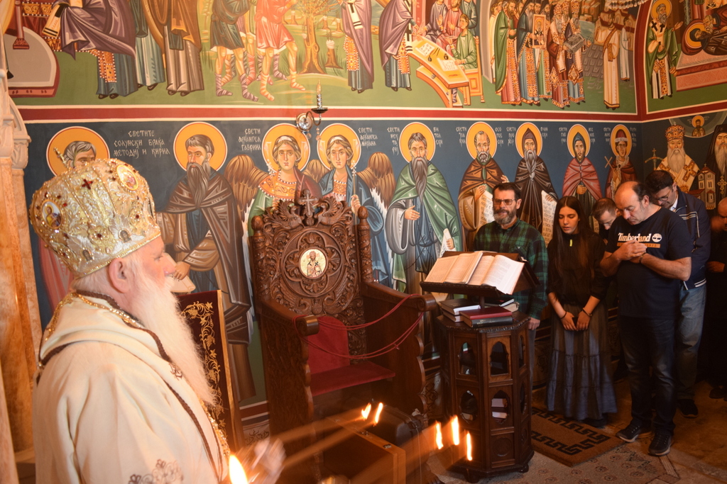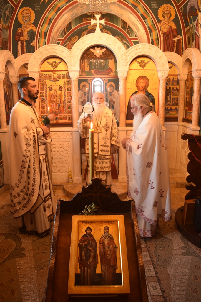 Да се помолиме на семилостивиот Бог да нѐ благослови сите нас, по молитвите на светите рамноапостолни сесловенски учители Кирил и Методиј. Да се помолиме тие да бидат со сите нас, со нашата света Црква и со нашата држава. Милостивиот Господ да ја приклони Својата милост кон целиот човечки род и да го сочува човештвото од секакво зло и соблазни. Амин.