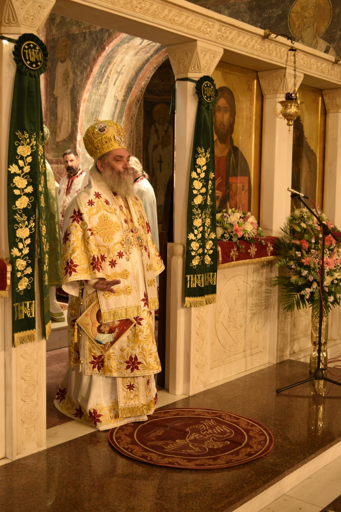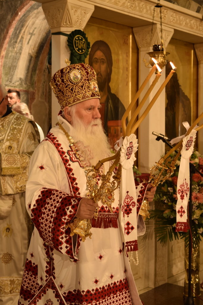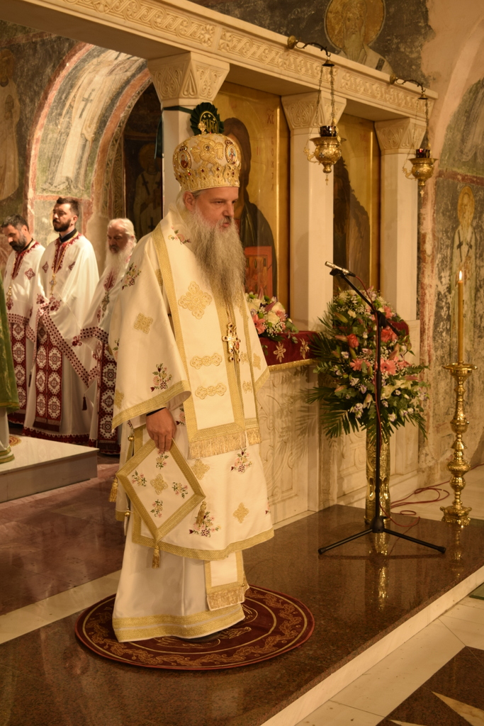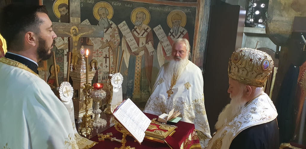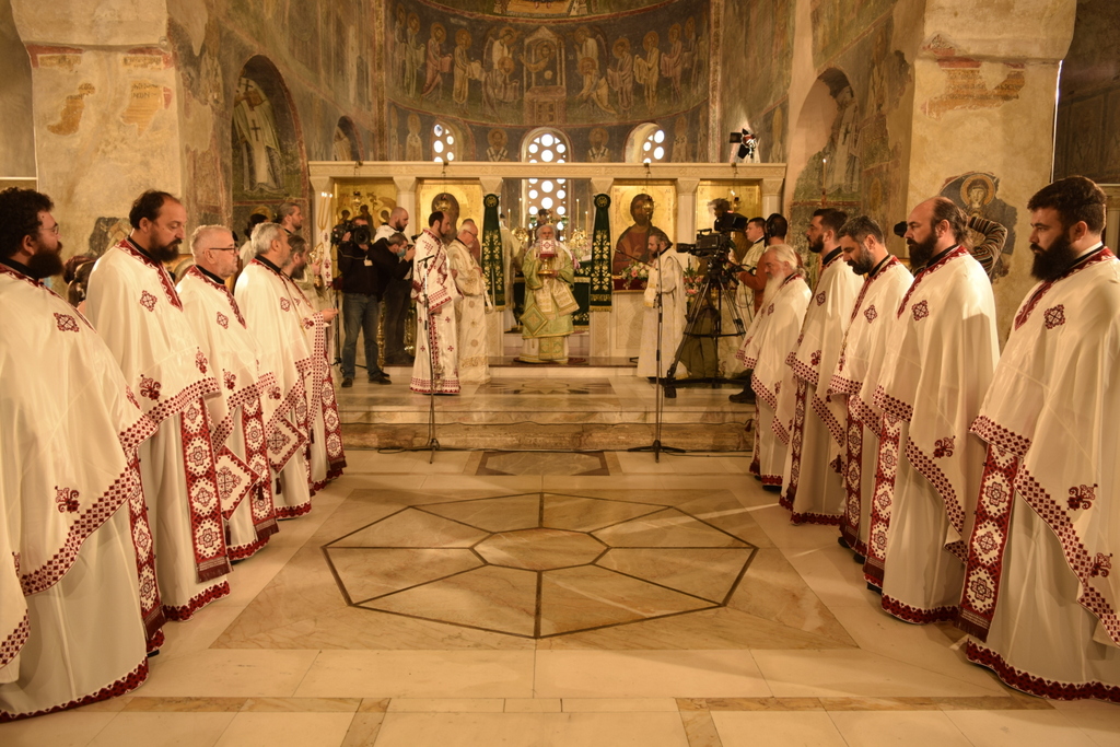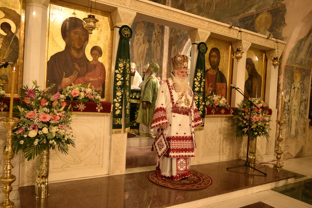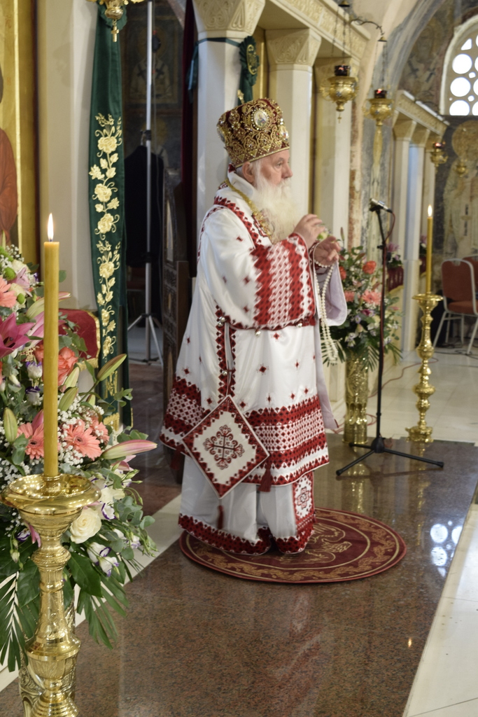 По нивните молитви, еве, и ние денес, овде стоиме пред лицето на Живиот Бог и се радувaме во Господа, изразувајќи ја нашата соборна благодарност за сето она што Тој, Самиот премудро го устроил за нас. Му благодариме за Богородица, Му благодариме за апостолите, Му благодариме за епископите, за презвитерите, за народот Божји, за нашите духовни родители, за нашите предци, за нашите татковци и мајки, за нивниот труд и мака. Исто така, Му благодариме и за возобновителите на нашата Црква, за можноста да Му служиме, да Му се молиме и обраќаме на нашиот мајчин македонски јазик, Му благодариме за сите порано починати отци и браќа наши, за архиепископите, архиереите, свештенослужителите, монасите, и за сите што смирено го носеа и го носат својот крст на ова наше парче земја низ историските искушенија и премрежија. Му благодариме на Бога и за нашите непријатели и се молиме за нив. Сето тоа го правиме негувани, оживотворени, и укрепувани од Светиот Дух, Kој, како тивок ветрец, таинствено го прегрнува секого од нас и, како единствен и неповторлив, го вчленува во небоземната богочовечка заедница, во Телото на Единородниот Син на нашиот Отец небесен.