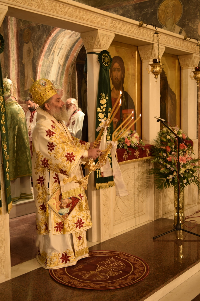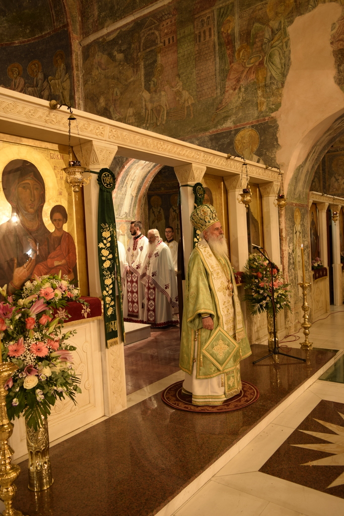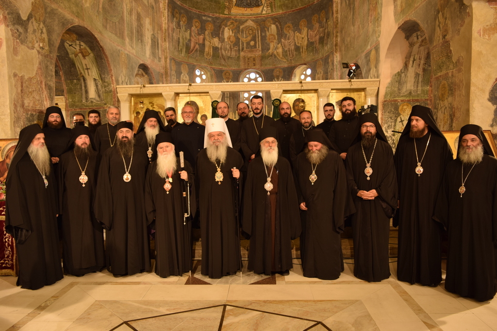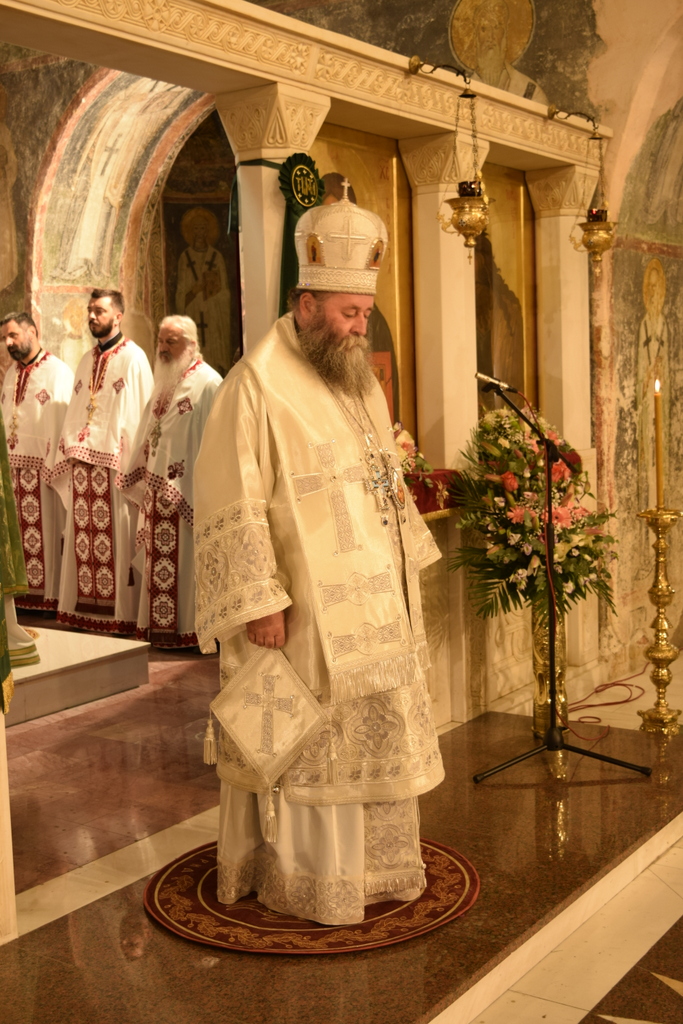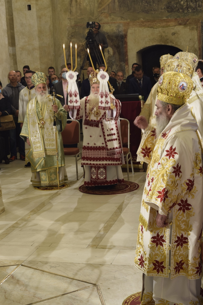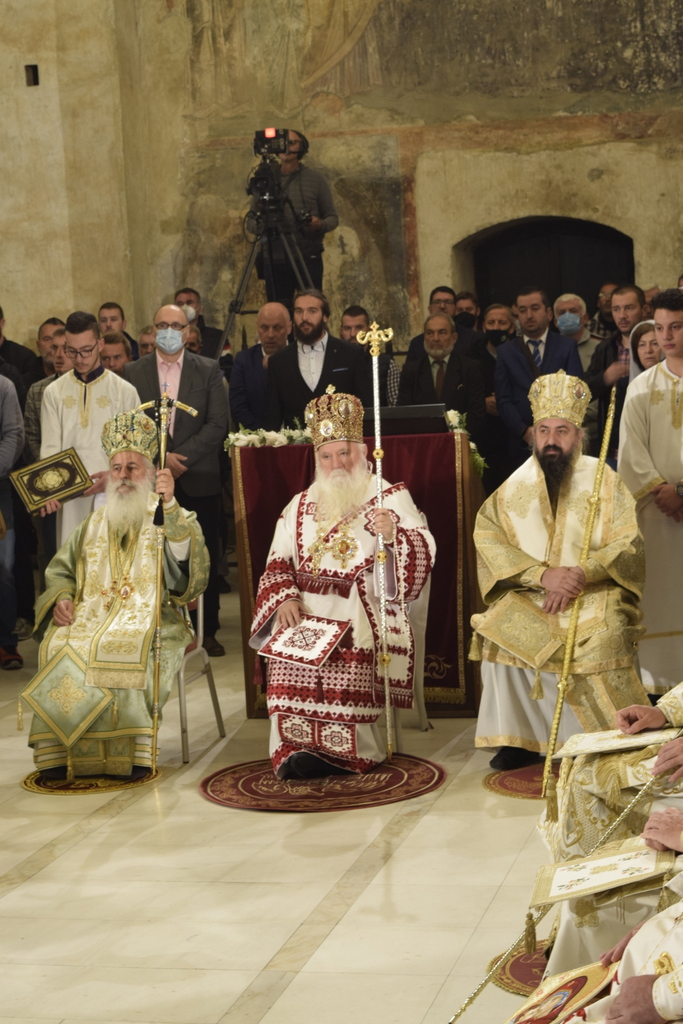 По нивните молитви, еве, и ние денес, овде стоиме пред лицето на Живиот Бог и се радувaме во Господа, изразувајќи ја нашата соборна благодарност за сето она што Тој, Самиот премудро го устроил за нас. Му благодариме за Богородица, Му благодариме за апостолите, Му благодариме за епископите, за презвитерите, за народот Божји, за нашите духовни родители, за нашите предци, за нашите татковци и мајки, за нивниот труд и мака. Исто така, Му благодариме и за возобновителите на нашата Црква, за можноста да Му служиме, да Му се молиме и обраќаме на нашиот мајчин македонски јазик, Му благодариме за сите порано починати отци и браќа наши, за архиепископите, архиереите, свештенослужителите, монасите, и за сите што смирено го носеа и го носат својот крст на ова наше парче земја низ историските искушенија и премрежија. Му благодариме на Бога и за нашите непријатели и се молиме за нив. Сето тоа го правиме негувани, оживотворени, и укрепувани од Светиот Дух, Kој, како тивок ветрец, таинствено го прегрнува секого од нас и, како единствен и неповторлив, го вчленува во небоземната богочовечка заедница, во Телото на Единородниот Син на нашиот Отец небесен.