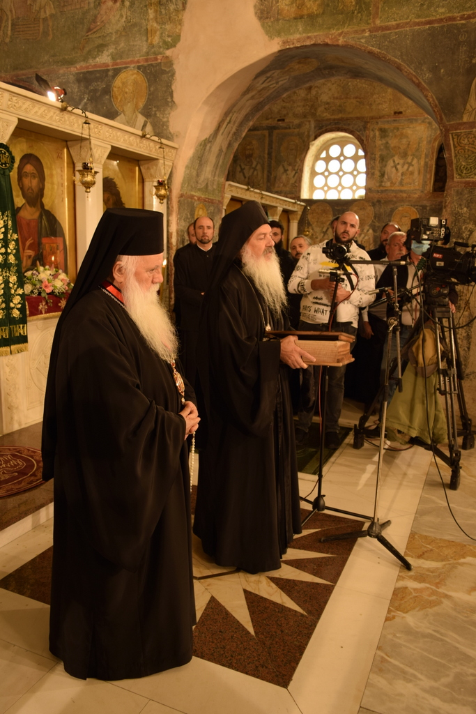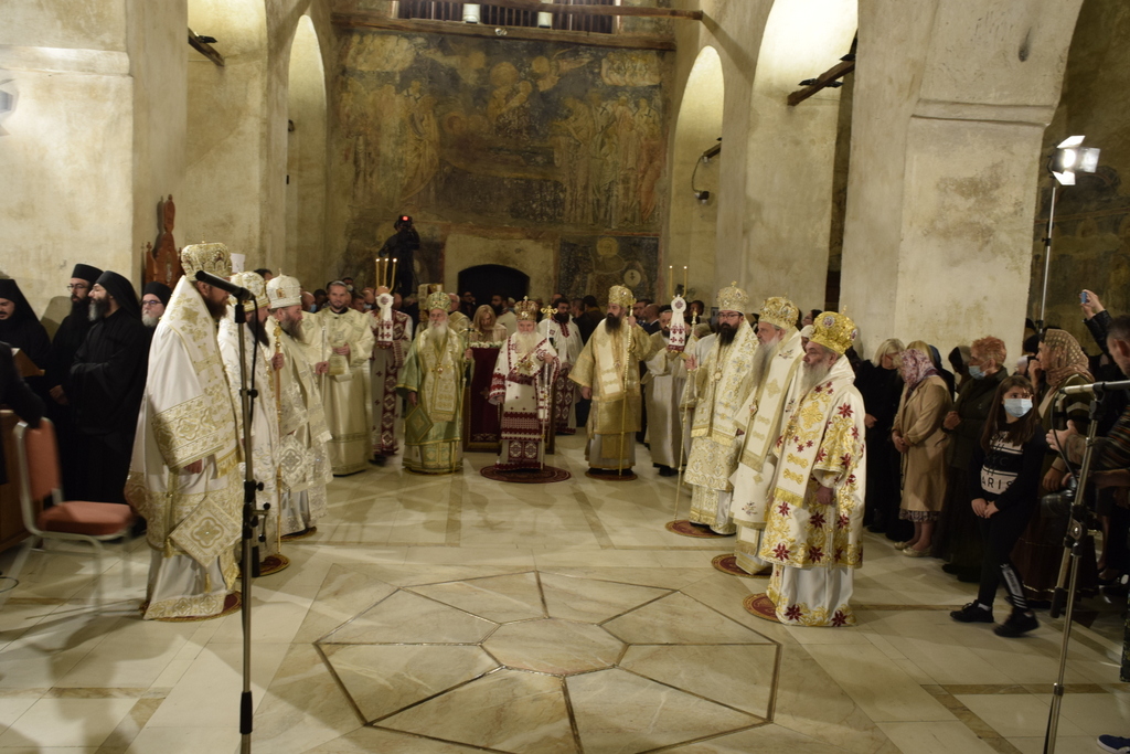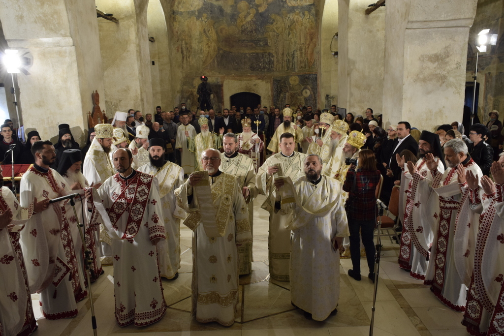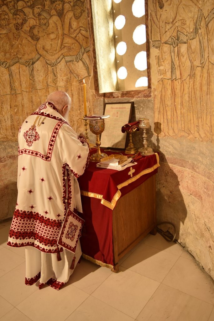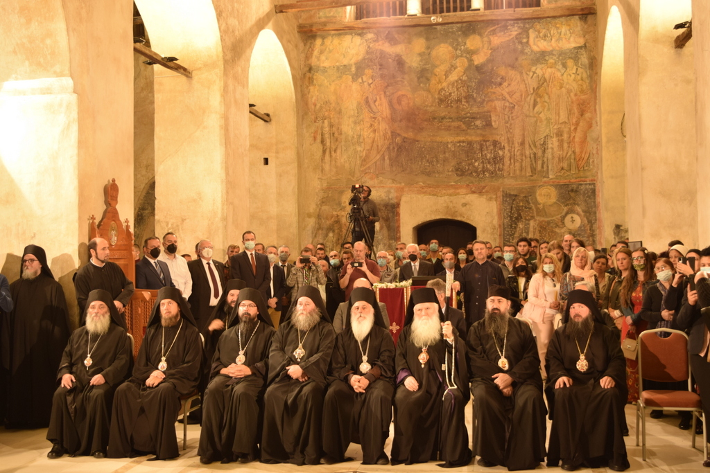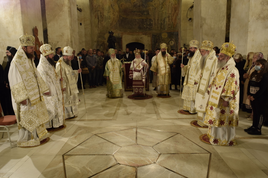 По нивните молитви, еве, и ние денес, овде стоиме пред лицето на Живиот Бог и се радувaме во Господа, изразувајќи ја нашата соборна благодарност за сето она што Тој, Самиот премудро го устроил за нас. Му благодариме за Богородица, Му благодариме за апостолите, Му благодариме за епископите, за презвитерите, за народот Божји, за нашите духовни родители, за нашите предци, за нашите татковци и мајки, за нивниот труд и мака. Исто така, Му благодариме и за возобновителите на нашата Црква, за можноста да Му служиме, да Му се молиме и обраќаме на нашиот мајчин македонски јазик, Му благодариме за сите порано починати отци и браќа наши, за архиепископите, архиереите, свештенослужителите, монасите, и за сите што смирено го носеа и го носат својот крст на ова наше парче земја низ историските искушенија и премрежија. Му благодариме на Бога и за нашите непријатели и се молиме за нив. Сето тоа го правиме негувани, оживотворени, и укрепувани од Светиот Дух, Kој, како тивок ветрец, таинствено го прегрнува секого од нас и, како единствен и неповторлив, го вчленува во небоземната богочовечка заедница, во Телото на Единородниот Син на нашиот Отец небесен.