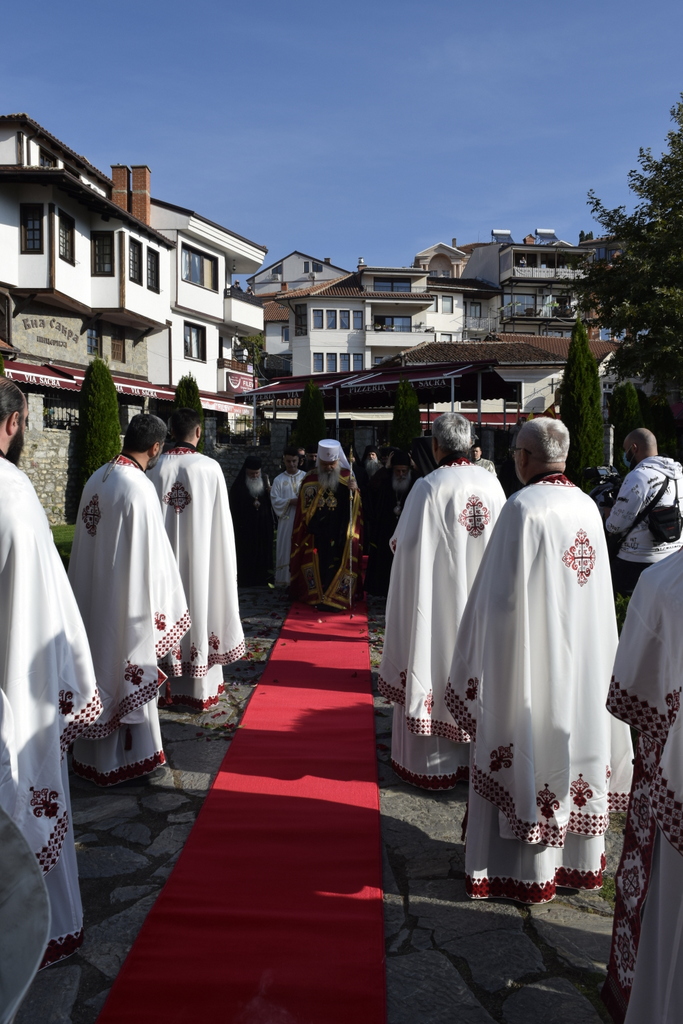 Му благодариме на Бога што денес, на денот на сите свети кои засветлија по македонската земја, заедно сме во Охрид, во срцето на нашата соборна духовност, во чудесниот храм на Премудроста Божја — Света Софија. Во оваа молитвена заедница со светите, првото што нè пресретнува е нивната целосна посветеност на Бога и на луѓето, нивната севкупна предаденост и подготвеност да благодарат за сите и за сè. Затоа, кај светите нема да се најде ниту најмала сенка на нељубов кон другиот и туѓинецот, кон различниот и страдалниот, кон поредокот и природата. Нивниот живот е проникнат од постојана молитва, што се состои во непрестајно славословие кон Создателот за сè што направил и што постојано прави за нашето обесмртување, за нашиот бескраен и бесконечен живот со оние што ги љубиме и што нè љубат.