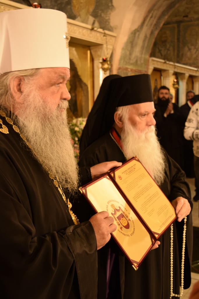 Ваше Високопреосвештенство, дозволете ми да ја изразам својата увереност дека со личниот влог на Вашата архиерејска служба, и на сите браќа архиереи, како носители на апостолското преемство, МПЦ-ОА е поставена на цврсти неразрушливи темели. Тоа се темелите на чистата православна вера и на светото предание што Вие неуморно ги сведочите во нашево време, а за кои допрва ќе се произнесува историскиот хроничар. Истиот ќе има многу работа за Вашиот исклучителен и неповторлив придонес во континуитетот и актуализацијата на апостолското и светотечкото црковно наследство, за развојот и промоцијата на православното духовно творештво и за збогатувањето и негувањето на истото, како во Вашата епархија, така и во целата Црква. Затоа и сте одликувани денес со највисокото црковно одличје „Свети Климент Охридски од прв ред“.