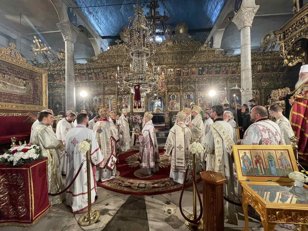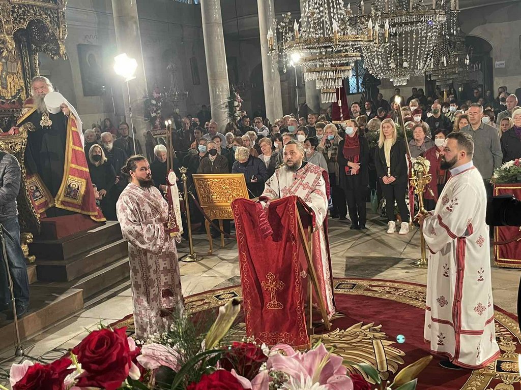 Па така, и денес, на денот кога го празнуваме светиот вмч. Димитриј Солунскиот Чудотворец, ние сме, литургиски собрани во присуството Божјо, во заедница лишена од смртта, во молитвена прегратка со нашите живи и починати — блиски и далечни.