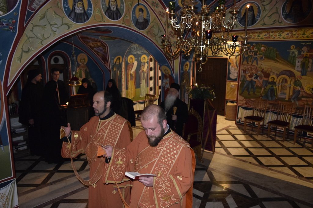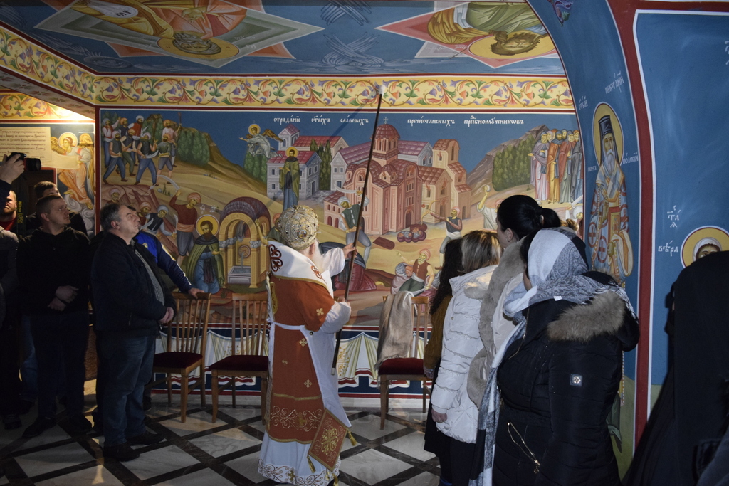 Празнувањата започнаа на 11 декември, со Воскресна вечерна богослужба, на којашто чиноначалствуваше Неговото Високопреосвештенство Митрополитот Плаошко-струшки и Дебарско-кичевски и Администратор Австралиско-сиднејски г. Тимотеј, во сослужение на протоерејот-ставрофор Никола Христоски, еромонахот Макариј, протоѓаконот Николче Ѓурѓиноски и ѓаконот Марко Спасовски. Торжествата продолжија утредента, на 12 декември, кога беше осветен новиот параклис, а по осветувањето, беше отслужена и света архиерејска Литургија, на којашто чиноначалствуваше Митрополитот Тимотеј, во сослужение на протоерејот-ставрофор Никола Христоски, еромонахот Макариј, свештеникот Александар Матески, протоѓаконот Николче Ѓурѓиноски и ѓаконот Марко Спасовски. По завршувањето на Литургијата, Митрополитот Тимотеј се обрати кон верниот народ, кој и покрај тешките временски услови, со вера во Господа успеа да дојде на овој свечен ден. На самиот крај, Митрополитот Тимотеј испрати пофални зборови до зографите кои се погрижија за фрескоживописот, како и до сите верници кои претходната вечер, не штедејќи се, се погрижија безбедно да пристигнеме до манастирот, чистејќи го големиот снег којшто го зафати овој крај. Во продолжение ви ја пренесуваме беседата на Митрополитот Тимотеј во целост.