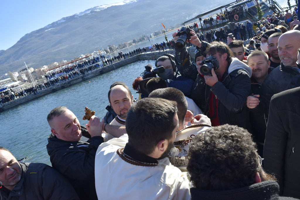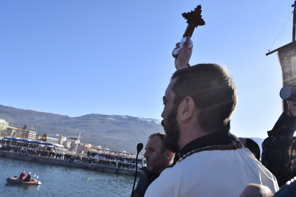 На 19.01.2022 година, на денот на славното и свето Богојавление на Господ Бог и Спасителот наш Исус Христос - Водици, денот кога Бог ги освети водите и посведочи за Божеството на Својот Син на Јорданските води, во храмот „Успение на Пресвета Богородица - Каменско“ во Охрид, беше отслужена света архиерејска Литургија, на којашто чиноначалствуваше Неговото Високопреосвештенство Митрополитот Плаошко-струшки и Дебарско-кичевски и Администратор Австралиско-сиднејски г. Тимотеј, во сослужение на протоерејот-ставрофор Никола Христоски, свештеникот Димче Азески, протоѓаконот Николче Ѓурѓиноски и ѓаконот Марко Спасовски. По завршувањето на Литургијата, беше извршен чинот на Голем Богојавленски водосвет, а Митрополитот Тимотеј се обрати кон верниците со пригодна беседа, којашто подолу во целост ви ја пренесуваме. По завршувањето на богослужбата, Богојавленската литија, предводена од свештенството, се упати кон водите на Охридското Езеро, каде што истите беа осветени, а традиционално беше фрлен и светиот Крст во охридските води. Оваа година Бог благослови Крстот да падне во рацете на г-дин Мартин Гоџо од Охрид. Него му честитаме со желби и молитви за добро здравје, успех и вера во Бога, а оваа голема радост за него да биде и негов поттик за усовршување во христијанската вера и љубов. Во продолжение ви ја пренесуваме беседата од Митрополитот Тимотеј.