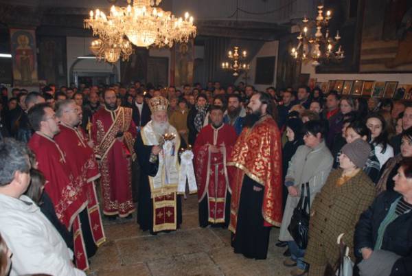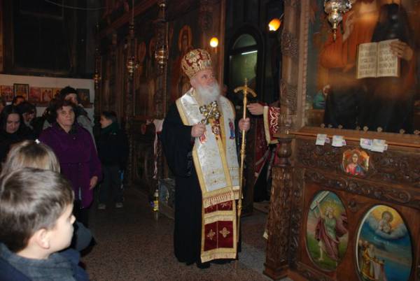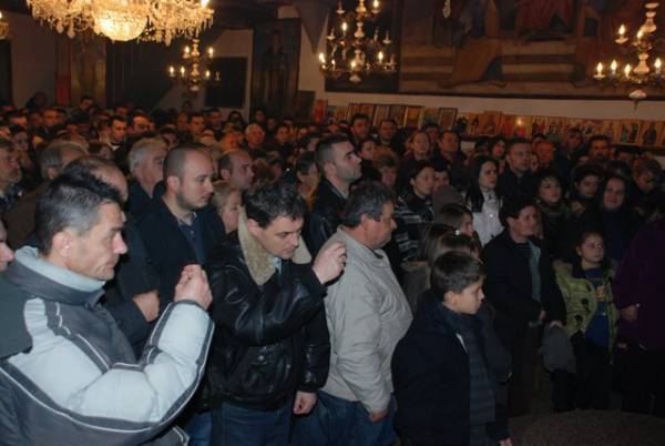 со празнична вечерна богослужба на која чиноначалствуваше Неговото Високопреосвештенство Митрополитот Дебарско-кичевски г. Тимотеј, во сослужение на протоереј-ставрофор Ѓорѓи Лапоски, протоереите Војне Ристески, Стевчо Тошевски, Игор Никовски, свештеник Ристо Камбуроски и ѓакон Николче Ѓурѓиноски. По вечерната богослужба беа осветени и поделени бадниковите гранчиња, а Митрополитот Тимотеј се обрати кон многубројните верници со пригодна беседа, која подолу во целост ви ја пренесуваме.