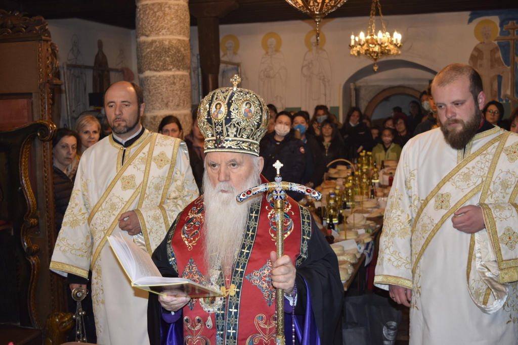 По молитвите на Пресветата, Владичица наша Богородица и Приснодева Марија и човекољубието на единородниот Син Божји, Господ наш Исус Христос, на Кого Му прилега секаква слава, чест и поклонување, заедно со Неговиот беспочетен Отец и Пресветиот и Благ и Животворен Дух, сега и секогаш и во вечни векови.