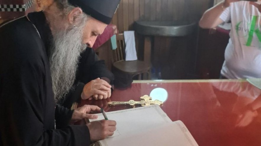 По Божјата милост и благослов, како и со застапништвото на светиот Климент Охридскиот Чудотворец и светиот Сава Српски, по долги години искушенија за двете цркви - Македонската православна црква - Охридска архиепископија и Српската православна црква, дојде времето да го покажеме на дело исполнувањето на Новата Христова безвремена заповед. По молитвите и заложбите на Неговото Блаженство Архиепископот Охридски и Македонски г.г. Стефан и на Неговата Светост Патријархот Српски г.г. Порфириј, како и по снисходењето и молитвите на членовите на Синодите на двете сестрински цркви, Господ даде по долги години браќата кои никогаш и реално не се оддалечија, сега повторно да го возобноват мирот што Господ ни го остави преку Своите свети апостоли и ученици. А кога браќата се љубат помеѓу себе, тие и не сакаат за долго да бидат оддалечени еден од друг, туку заеднички да пребиваат во љубовта Христова, заеднички величајќи го Неговото Име. Во овој евангелски дух, на 20 и 21 јуни 2022 година, се случи и посетата на Патријархот Српски г.г. Порфириј на нашите древни светињи, изградени покрај водите на прекрасното Охридско Езеро.