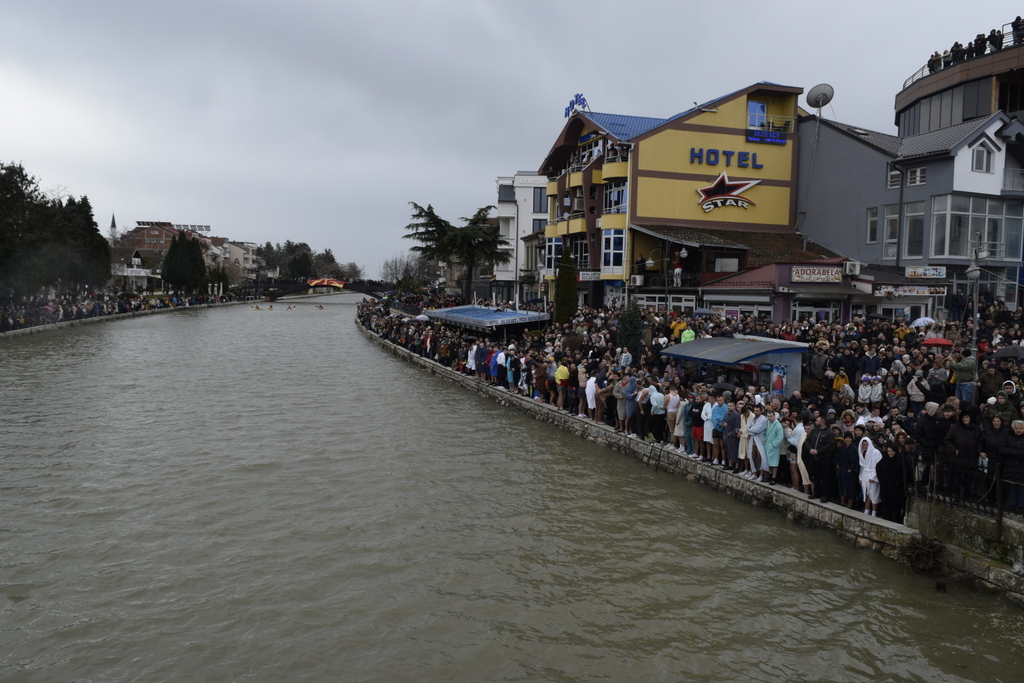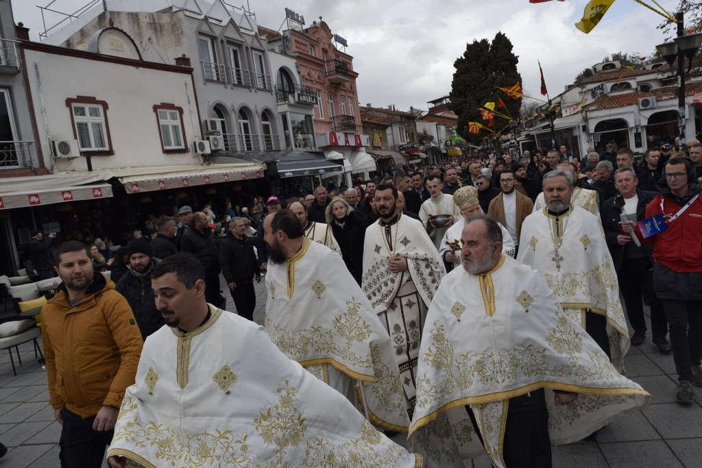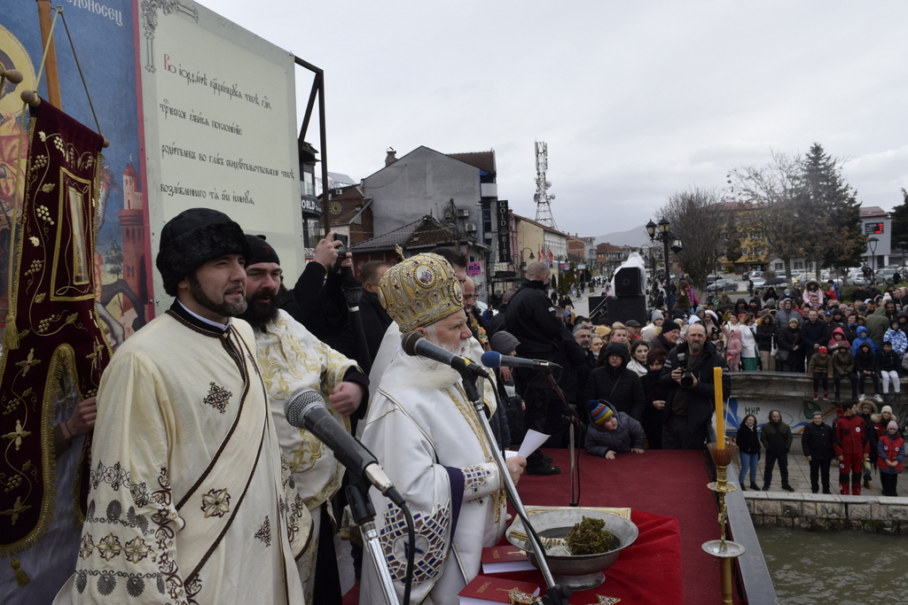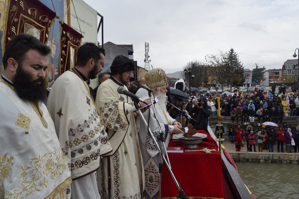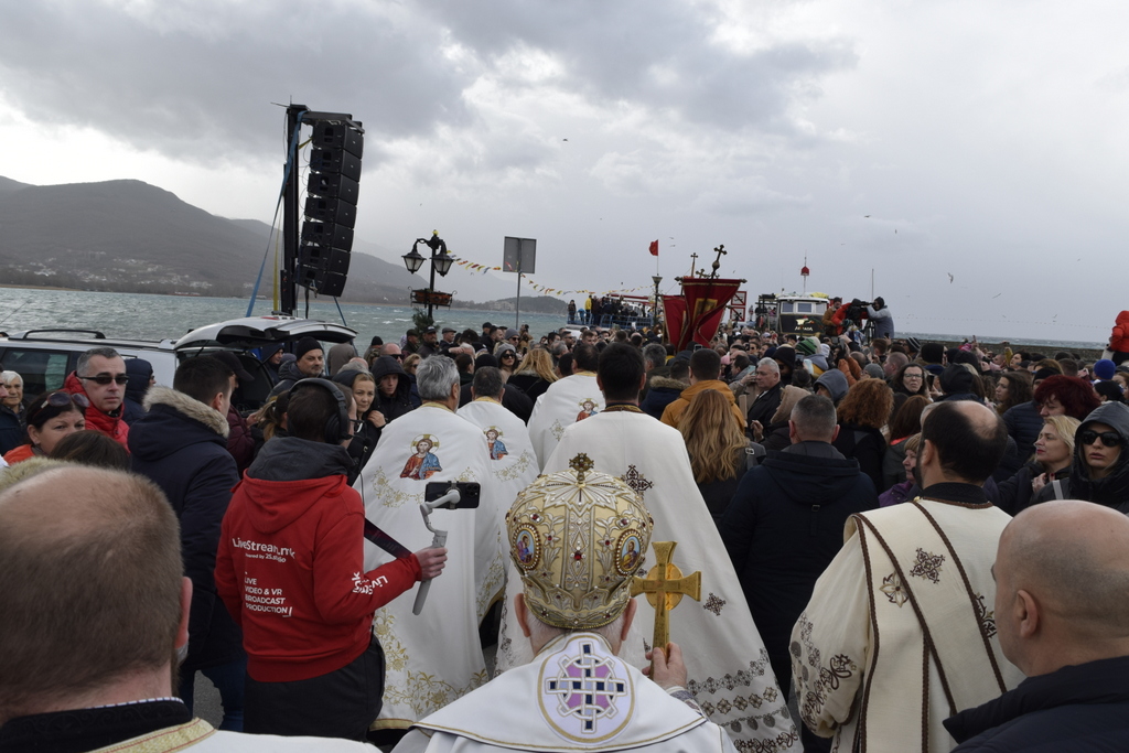 Откако заврши Литургијата, според одамна востановениот обичај, свечената Литија, предводена од Митрополитот Тимотеј, се упати кон водите на Охридското Езеро, кои беа осветени, а во нив се положи и светиот Крст, а оваа година Бог благоволи светиот Крст да дојде во рацете на Васко Довлев од Охрид. Овогодинешниот Богојавлеснки празник беше збогатен и со присуството на Претседателот на Владата на РСМ, г-дин Димитар Ковачевски, Министерот за внатрешни работи на РСМ, г-дин Оливер Спасовски, Градоначалникот на општина Охрид, г-дин Кирил Пецаков, како и на други видни гости. По завршувањето на церемонијата во Охрид, Митрополитот Тимотеј ги освети и водите на реката Црн Дрим во Струга и го положи Крстот, а истиот дојде во рацете на Јован Рафтоски од Струга. Во Струга присутна беше Министерката за одбрана на РСм, г-ѓа Славјанка Петровска, Градоначалникот на општина Струга, г-дин Рамиз Мерко, а присутни беа и свештеници од Албанската православна црква. На нашите верни чеда кои оваа година добија благослов од Бога да го фатат светиот Крст, им посакуваме успешна година, многу здравје и љубов од Бога, и за нив и за нивните семејства. Во продолжение ви ја пренесуваме беседата од Митрополитот Тимотеј.