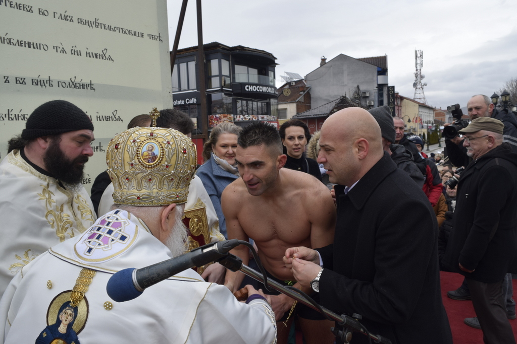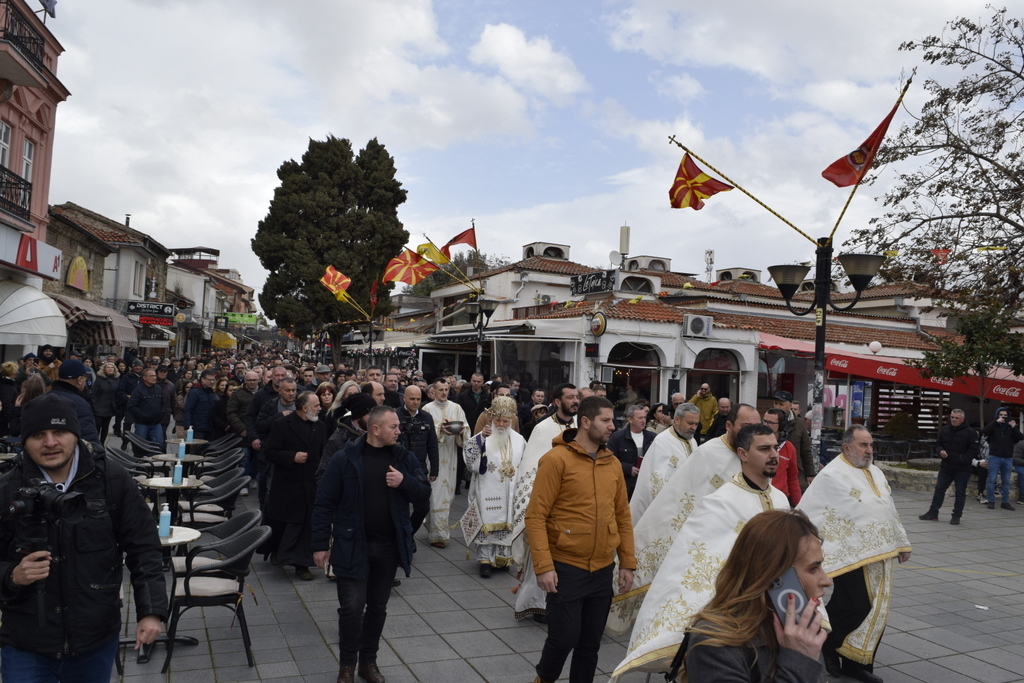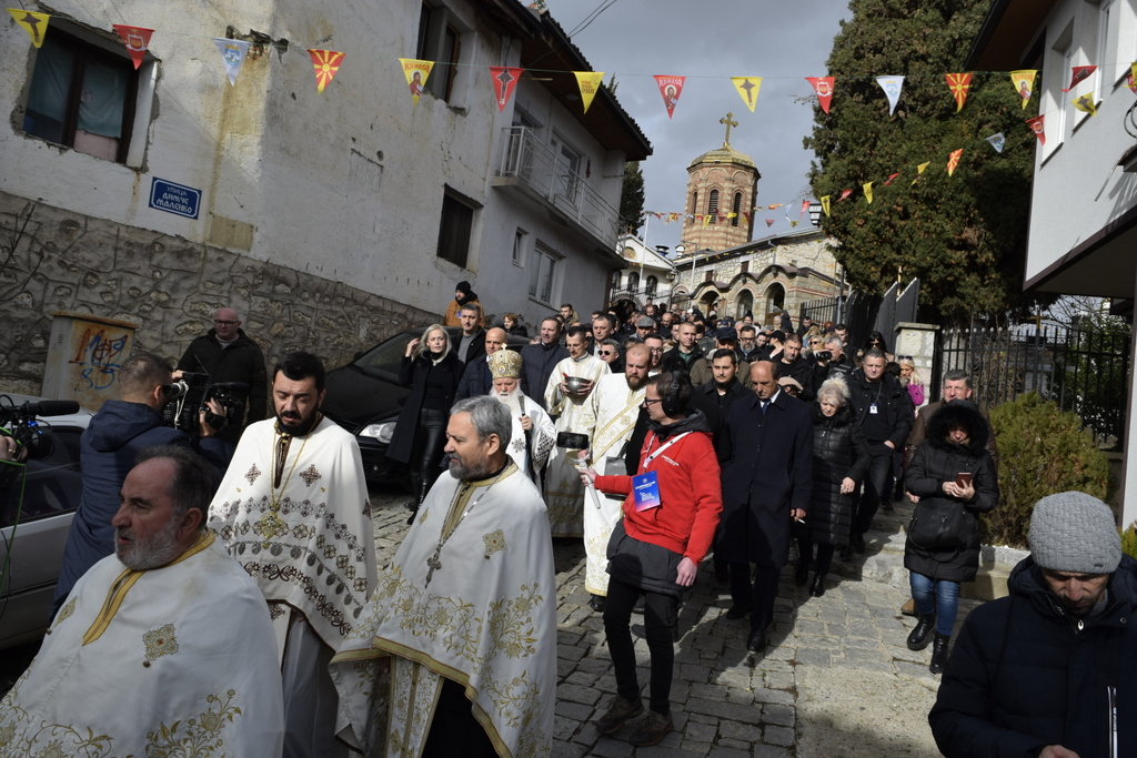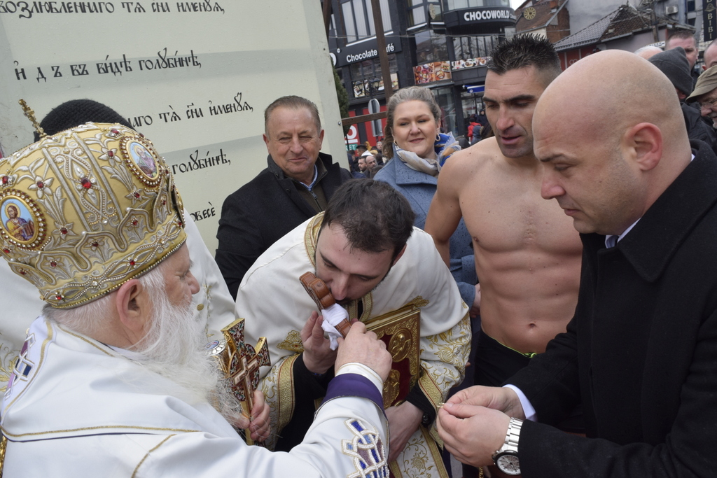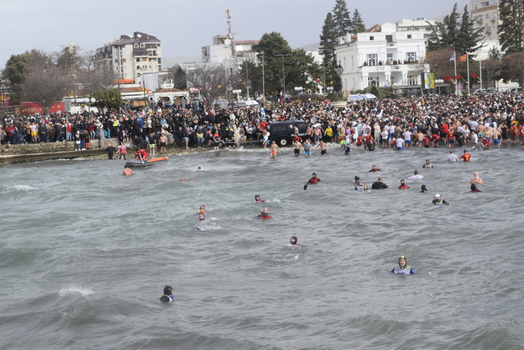 Откако заврши Литургијата, според одамна востановениот обичај, свечената Литија, предводена од Митрополитот Тимотеј, се упати кон водите на Охридското Езеро, кои беа осветени, а во нив се положи и светиот Крст, а оваа година Бог благоволи светиот Крст да дојде во рацете на Васко Довлев од Охрид. Овогодинешниот Богојавлеснки празник беше збогатен и со присуството на Претседателот на Владата на РСМ, г-дин Димитар Ковачевски, Министерот за внатрешни работи на РСМ, г-дин Оливер Спасовски, Градоначалникот на општина Охрид, г-дин Кирил Пецаков, како и на други видни гости. По завршувањето на церемонијата во Охрид, Митрополитот Тимотеј ги освети и водите на реката Црн Дрим во Струга и го положи Крстот, а истиот дојде во рацете на Јован Рафтоски од Струга. Во Струга присутна беше Министерката за одбрана на РСм, г-ѓа Славјанка Петровска, Градоначалникот на општина Струга, г-дин Рамиз Мерко, а присутни беа и свештеници од Албанската православна црква. На нашите верни чеда кои оваа година добија благослов од Бога да го фатат светиот Крст, им посакуваме успешна година, многу здравје и љубов од Бога, и за нив и за нивните семејства. Во продолжение ви ја пренесуваме беседата од Митрополитот Тимотеј.