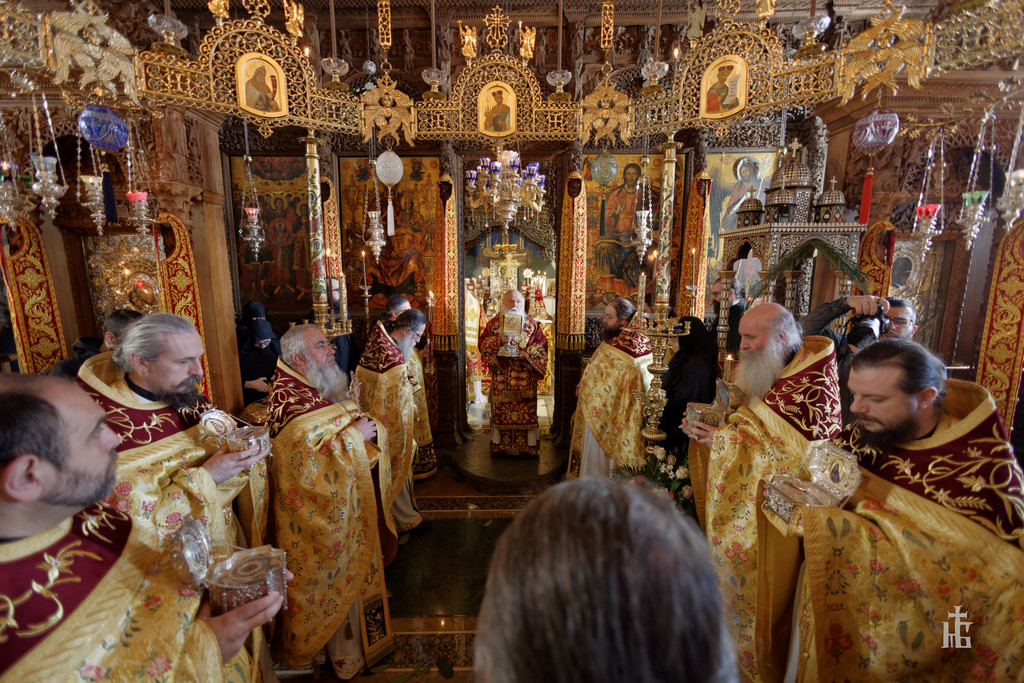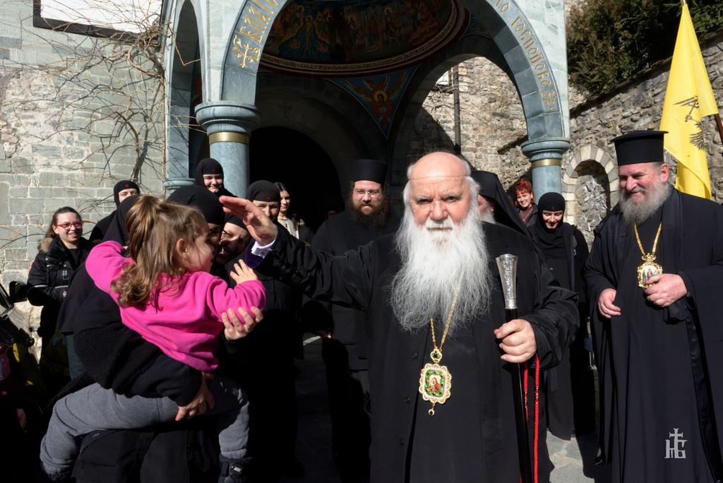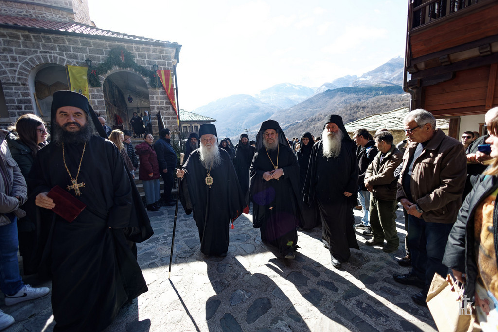 На 20.02.2023 година, денот кога го прославуваме споменот на светиот Партениј Лампсакиски, како и по повод именденот на игуменот на манастирот „Св. Јован Крстител“ - Бигорски манастир, Неговото Преосвештенство Епископот Антаниски г. Партениј, во Бигорскиот манастир беше отслужена света архиерејска Литургија, на којашто чиноначалствуваше Неговото Високопреосвештенство Митрополитот на Имврос и Тенедос г. Кирил, од Цариградската патријаршија, во сослужение на Неговото Високопреосвештенство Митрополитот Плаошко-струшки и Дебарско-кичевски и Администратор Австралиско-сиднејски г. Тимотеј, Неговото Преосвештенство Епископот Антаниски г. Партениј, архимандритите Доситеј, Матеј и Херувим (двајцата од Грчката православна црква), еромонасите Макариј, Ефросиниј и Кирил, свештениците Златко Пуреовски, Павел Крцоски и Миле Ангелоски и ероѓаконите Порфириј и Силуан. По завршувањето на Литургијата беше осветено празничното коливо, а Митрополитот Кирил го дарува нашиот Митрополит Тимотеј со сребрен медалјон изработен по повод 30 години од патријархувањето на Неговата Сесветост Вселенскиот Патријарх г. Вартоломеј, притоа изразувајќи благодарност за топлиот пречек во Бигорскиот манастир и пренесувајќи ги поздравите од Неговата Сесветост. На овие искрени зборови, со истата топла благодарност возврати и нашиот Митрополит, кој возврати на поздравите на Неговата Сесветост, со очекување дека набрзо ќе го посети древниот балкански Ерусалим - градот Охрид. По завршувањето на Литургијата, Митрополитот се обрати со пригодна беседа кон присутните верници, којашто интегрално ви ја пренесуваме.