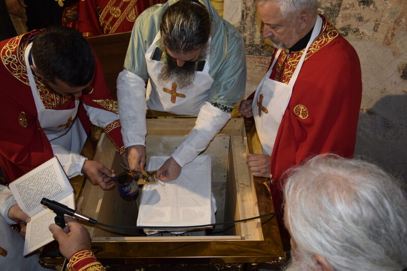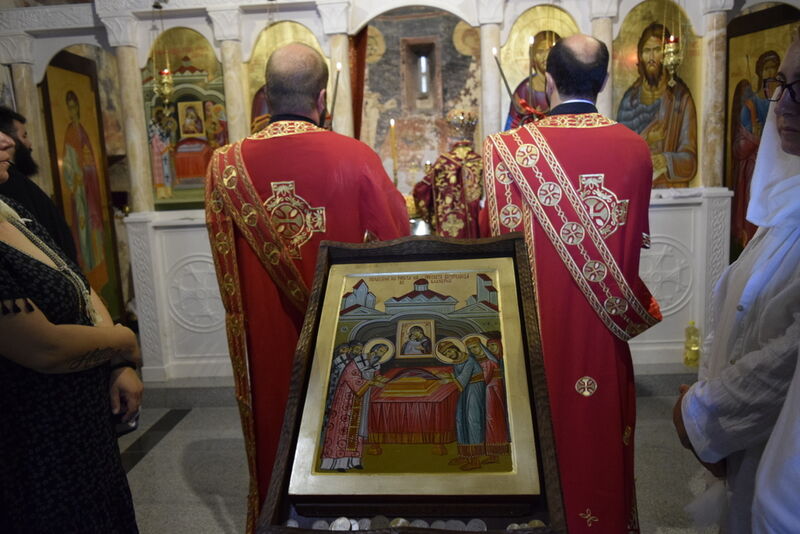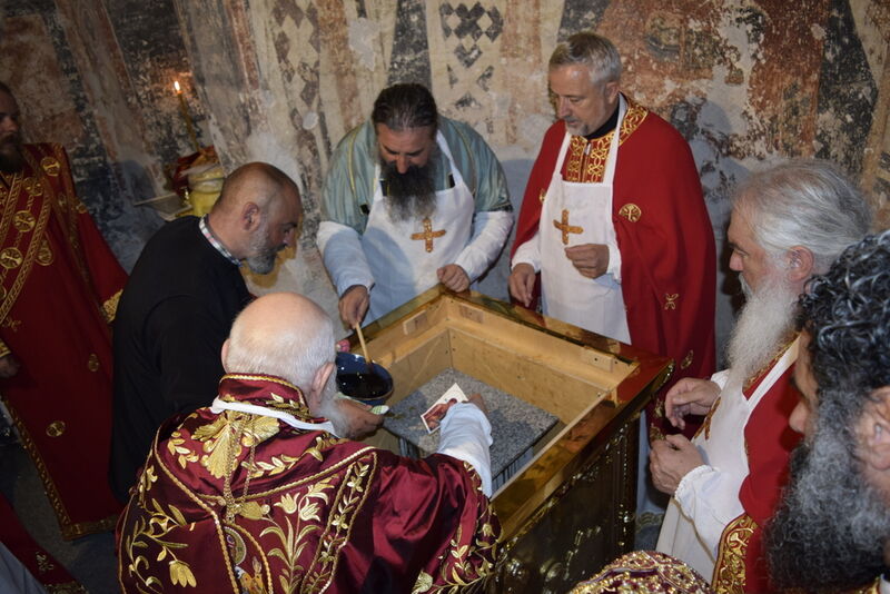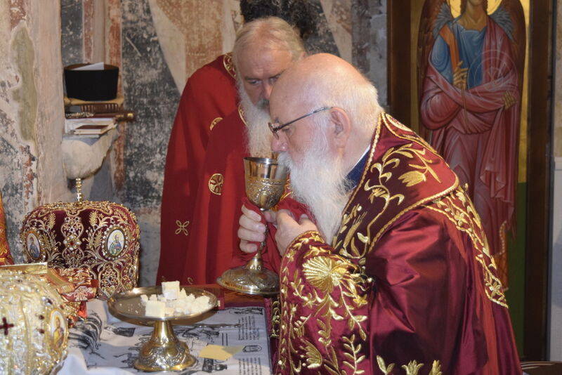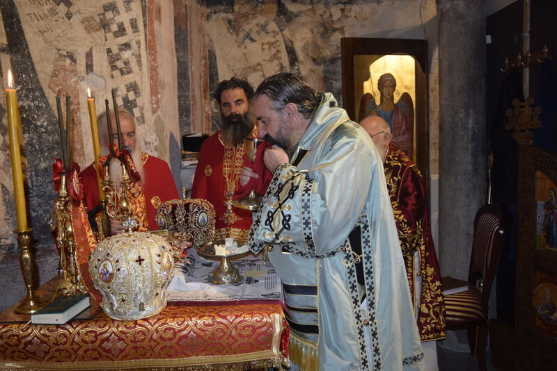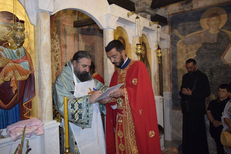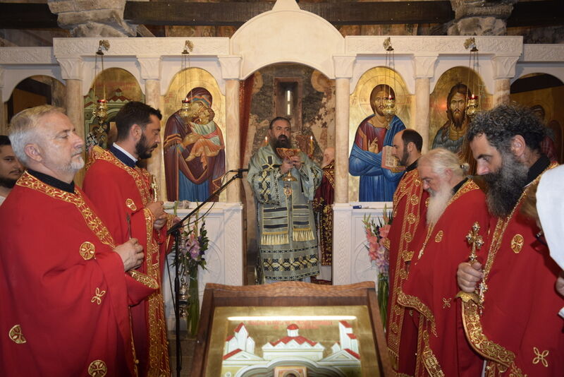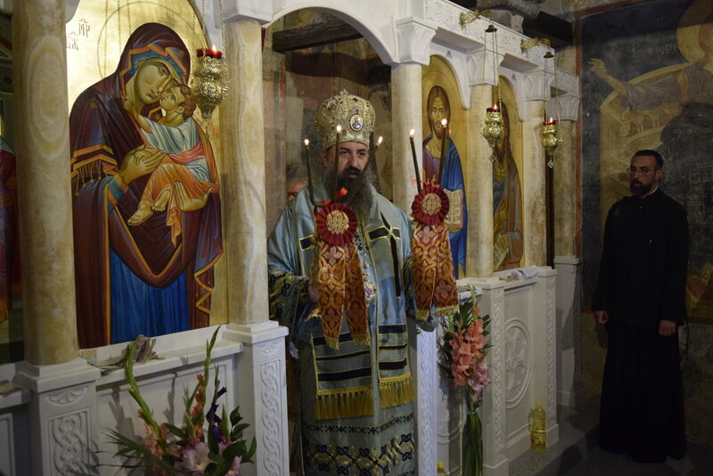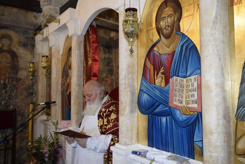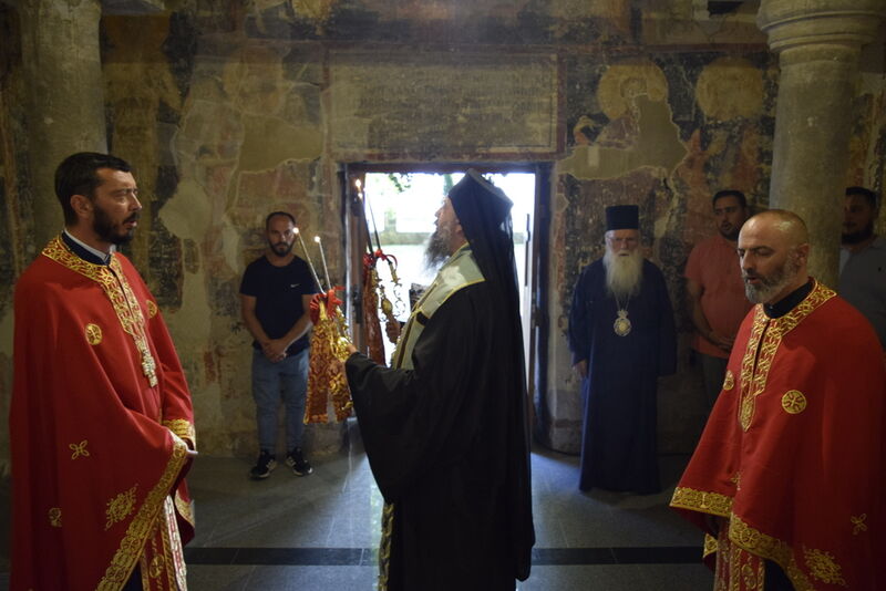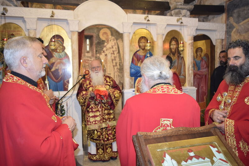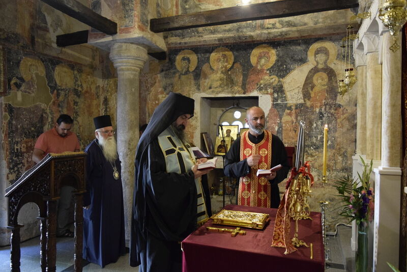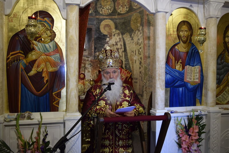 Денеска се собравме во овој свет манастир за да го преосветиме во чест и спомен на празникот Полагање на риза на Пресвета Богородица во Влахерна. Најпрво, и пред сѐ, би сакале да искажеме благодарност кон Бога, Кој нѐ удостои да го преосветиме овој древен храм од XIV век, којшто во голема мера беше обесветен од луѓе кои се нарекуваа „православни верници“. Со денешното осветување и со претходните интервенции, како внатрешно, така и надворешно, храмот ја врати основната дејност и цел за која и некогаш бил создаден од ктиторите.