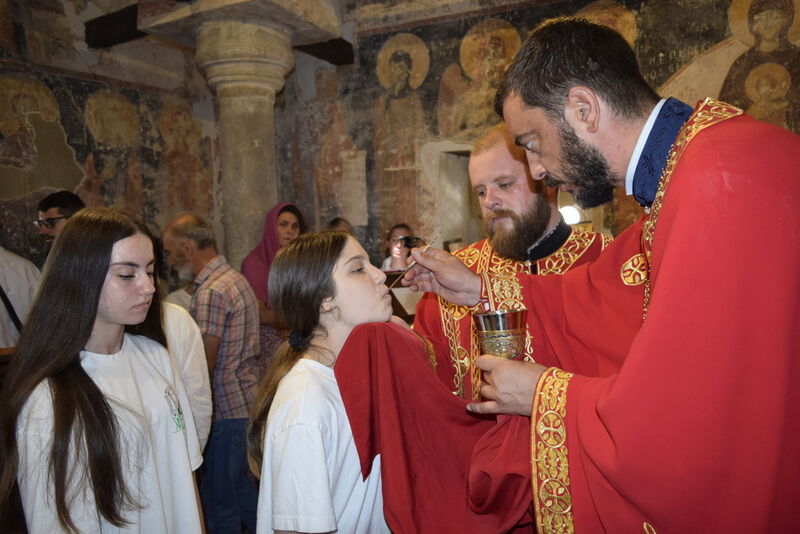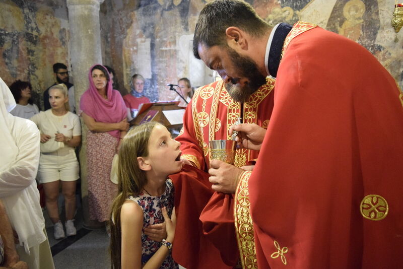 Во денешното свето Евангелие за време на Литургијата го слушнавме Евангелието кое што се чита на сите Богородични празници (Лука 10, 38-42). Господ Исус Христос ги посетува двете сестри на Лазара во Витанија, и едната се зафаќа со приготвување на разни јадења, а сѐ со цел да Го угости Господа Исуса Христа што е можно поубаво и повкусно. Додека, пак, другата сестра Марија седнала при нозете Исусови и го слушала словото Божјо. И двете биле зафатени сестри, и Марта и Марија, но на различни полиња. Едната се занимавала со овоземни работи, подготвувајќи храна за телото, додека Марија црпела духовна храна за душата. Марија не седи покрај Христа туку смирено кај неговите нозе ги прима сите зборови што Господ Христос ги изговарал, поучувајќи за Царството Божјо и за спасение на душата.
